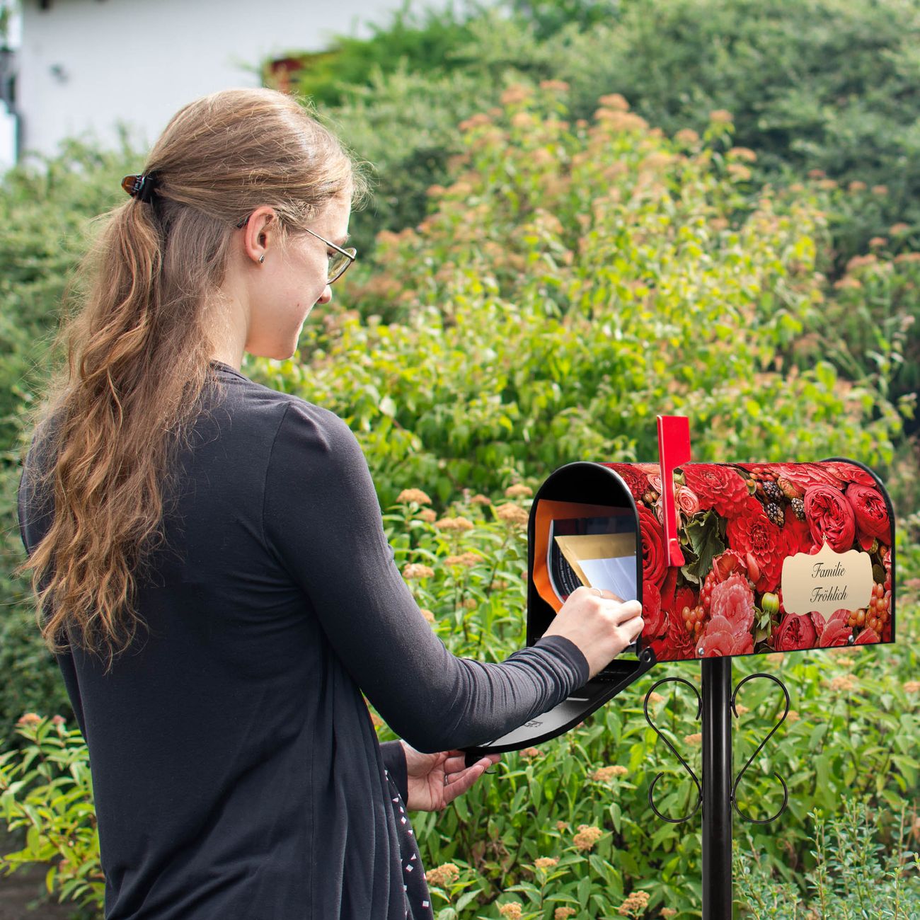 Unser amerikanischer Briefkasten mit dem Motiv Bouquet in Rot hat ein sehr ansprechendes und ausgefallenes Design, ist in der Grundfarbe weiß, grün oder schwarz erhältlich. Damit entlocken Sie Ihren Nachbarn und dem Postboten immer wieder ein Lächeln. Die Mailbox ist ein Original Import aus Mississippi USA und wird von unserer kleinen Manufaktur in Sachsen von Hand veredelt. Die US-Mailbox bietet ausreichend Platz auch für große Sendungen, eine Fahne die Ihnen Post anzeigt, wetterfestes und äußerst stabiles Material - so macht Post empfangen Freude.