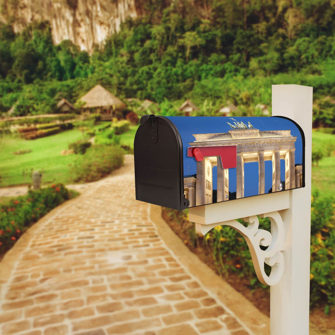 Unser amerikanischer Briefkasten mit dem Motiv Brandenburger Tor 2 hat ein sehr ansprechendes und ausgefallenes Design, ist in der Grundfarbe weiß, grün oder schwarz erhältlich. Damit entlocken Sie Ihren Nachbarn und dem Postboten immer wieder ein Lächeln. Die Mailbox ist ein Original Import aus Mississippi USA und wird von unserer kleinen Manufaktur in Sachsen von Hand veredelt. Die US-Mailbox bietet ausreichend Platz auch für große Sendungen, eine Fahne die Ihnen Post anzeigt, wetterfestes und äußerst stabiles Material - so macht Post empfangen Freude.