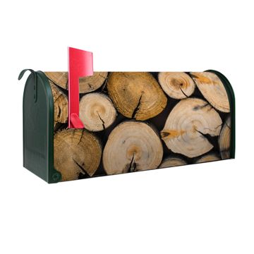 Unser amerikanischer Briefkasten mit dem Motiv Brennholz hat ein sehr ansprechendes und ausgefallenes Design, ist in der Grundfarbe weiß, grün oder schwarz erhältlich. Damit entlocken Sie Ihren Nachbarn und dem Postboten immer wieder ein Lächeln. Die Mailbox ist ein Original Import aus Mississippi USA und wird von unserer kleinen Manufaktur in Sachsen von Hand veredelt. Die US-Mailbox bietet ausreichend Platz auch für große Sendungen, eine Fahne die Ihnen Post anzeigt, wetterfestes und äußerst stabiles Material - so macht Post empfangen Freude.