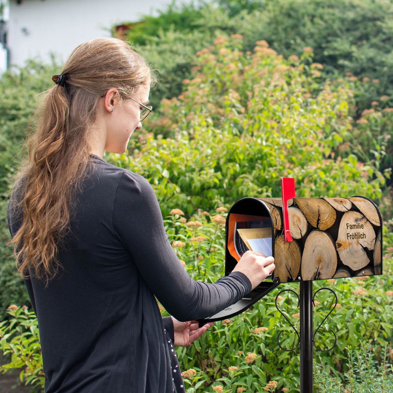 Unser amerikanischer Briefkasten mit dem Motiv Brennholz hat ein sehr ansprechendes und ausgefallenes Design, ist in der Grundfarbe weiß, grün oder schwarz erhältlich. Damit entlocken Sie Ihren Nachbarn und dem Postboten immer wieder ein Lächeln. Die Mailbox ist ein Original Import aus Mississippi USA und wird von unserer kleinen Manufaktur in Sachsen von Hand veredelt. Die US-Mailbox bietet ausreichend Platz auch für große Sendungen, eine Fahne die Ihnen Post anzeigt, wetterfestes und äußerst stabiles Material - so macht Post empfangen Freude.