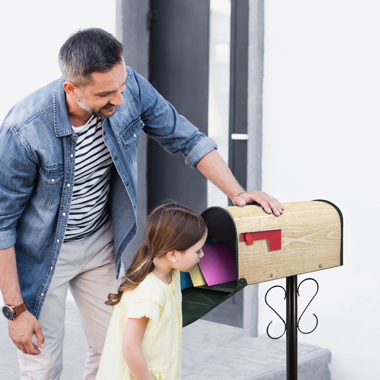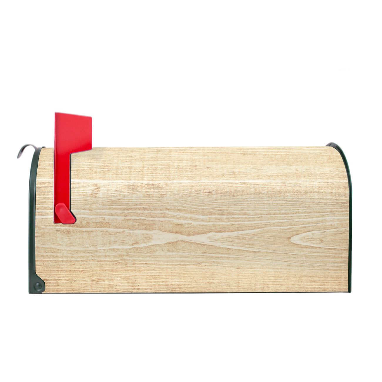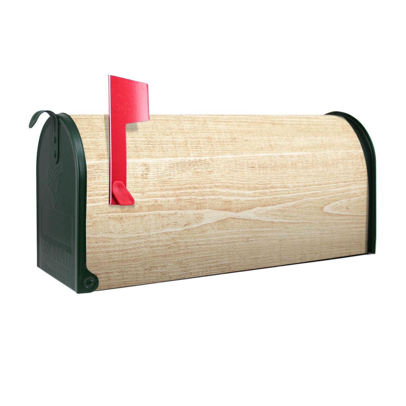 Der amerikanische Briefkasten von banjado mit Bretter Motiv bietet Ihnen ausreichend Fassungsvermögen, um große A4 Sendungen und Zeitschriften zu empfangen. Die typisch amerikanische rote Fahne zeigt Ihnen an, wenn Sie Post erhalten haben. Die US-Mailbox besteht aus verzinktem Stahlblech welches lackiert wurde und ist 48 x 22 x 16 CM (BxHxT) groß. Die Folie mit Motiv Bretter besteht aus einer wetter- und UV-resistenten Folie, die mit einem Schutzlaminat überzogen ist, sodass die US Mailbox zusätzlich vor Kratzern geschützt ist. An der Unterkante sind 4 Löcher je Seite um die Mailbox, typisch amerikanisch, an einem Holzpfahl oder einem Zaun zu befestigen. Auf Wunsch können Sie bei uns den passenden Standfuß oder die passende Wandhalterung kaufen um die US-Mailbox sicher zu befestigen. Wir bieten Ihnen ebenfalls Namensschilder, bereits beschriftet oder frei zu beschriften, und verschiedene selbst gestaltete Bitte-Keine-Werbung-Aufkleber.