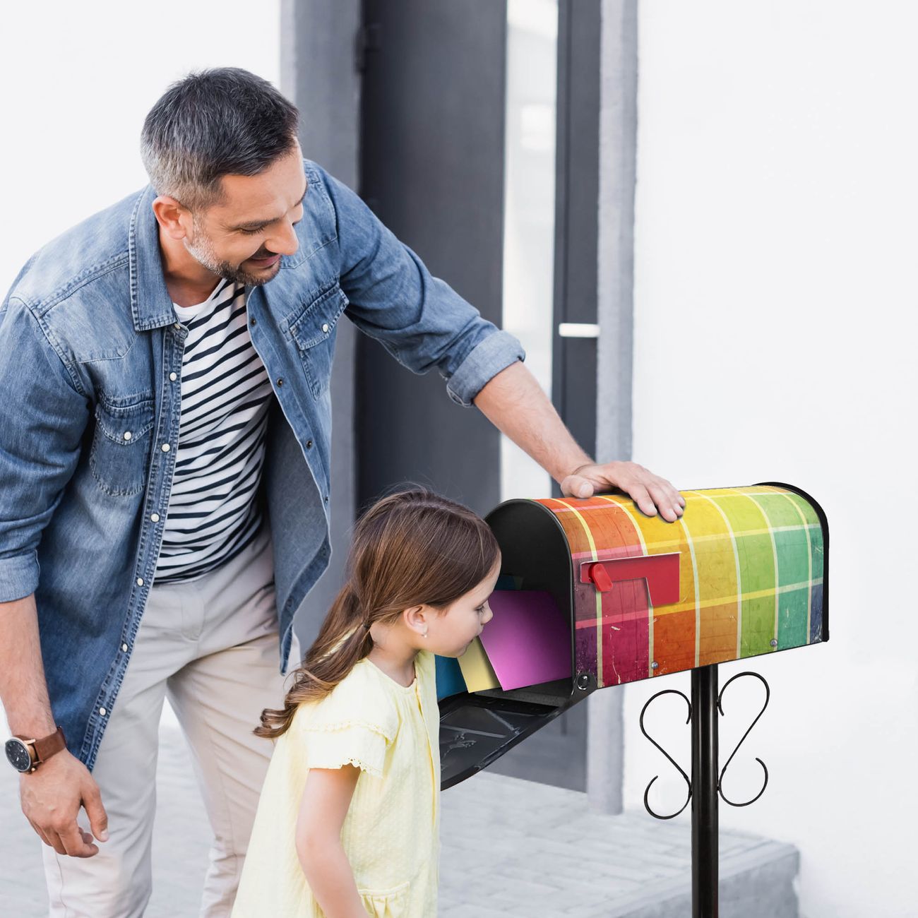 Unser amerikanischer Briefkasten mit dem Motiv Bunte Glasbausteine hat ein sehr ansprechendes und ausgefallenes Design, ist in der Grundfarbe weiß, grün oder schwarz erhältlich. Damit entlocken Sie Ihren Nachbarn und dem Postboten immer wieder ein Lächeln. Die Mailbox ist ein Original Import aus Mississippi USA und wird von unserer kleinen Manufaktur in Sachsen von Hand veredelt. Die US-Mailbox bietet ausreichend Platz auch für große Sendungen, eine Fahne die Ihnen Post anzeigt, wetterfestes und äußerst stabiles Material - so macht Post empfangen Freude.