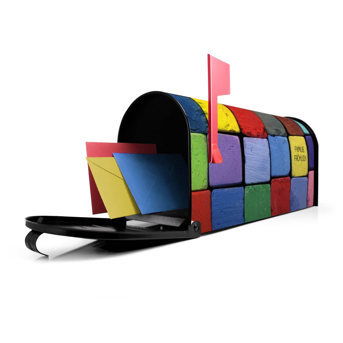 Unser amerikanischer Briefkasten mit dem Motiv Bunte Kreide hat ein sehr ansprechendes und ausgefallenes Design, ist in der Grundfarbe weiß, grün oder schwarz erhältlich. Damit entlocken Sie Ihren Nachbarn und dem Postboten immer wieder ein Lächeln. Die Mailbox ist ein Original Import aus Mississippi USA und wird von unserer kleinen Manufaktur in Sachsen von Hand veredelt. Die US-Mailbox bietet ausreichend Platz auch für große Sendungen, eine Fahne die Ihnen Post anzeigt, wetterfestes und äußerst stabiles Material - so macht Post empfangen Freude.