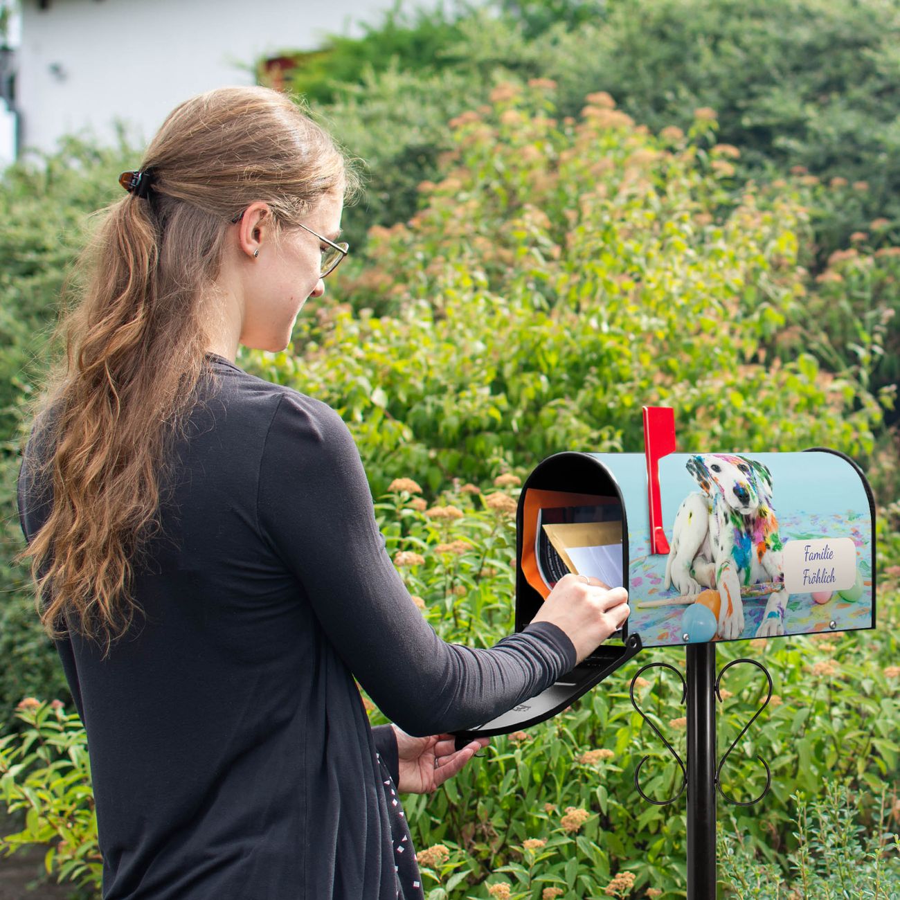 Unser amerikanischer Briefkasten mit dem Motiv Bunter Dalmatiner hat ein sehr ansprechendes und ausgefallenes Design, ist in der Grundfarbe weiß, grün oder schwarz erhältlich. Damit entlocken Sie Ihren Nachbarn und dem Postboten immer wieder ein Lächeln. Die Mailbox ist ein Original Import aus Mississippi USA und wird von unserer kleinen Manufaktur in Sachsen von Hand veredelt. Die US-Mailbox bietet ausreichend Platz auch für große Sendungen, eine Fahne die Ihnen Post anzeigt, wetterfestes und äußerst stabiles Material - so macht Post empfangen Freude.