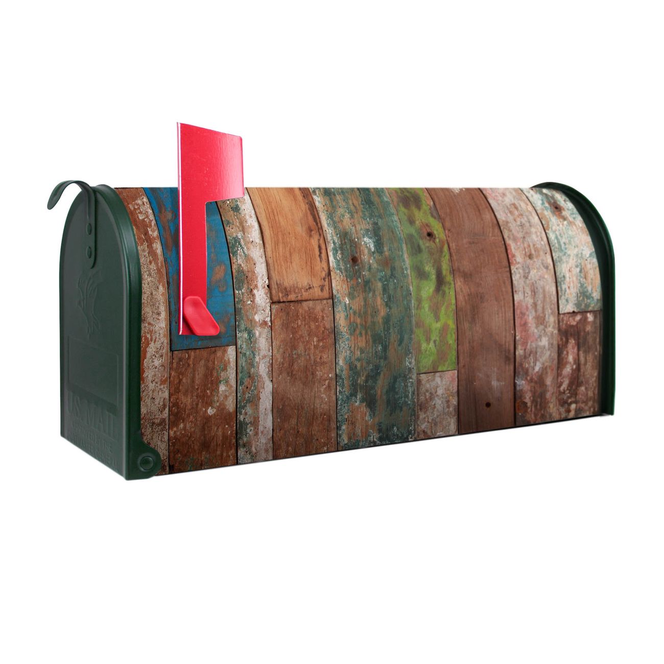 Unser amerikanischer Briefkasten mit dem Motiv Buntes Holz hat ein sehr ansprechendes und ausgefallenes Design, ist in der Grundfarbe weiß, grün oder schwarz erhältlich. Damit entlocken Sie Ihren Nachbarn und dem Postboten immer wieder ein Lächeln. Die Mailbox ist ein Original Import aus Mississippi USA und wird von unserer kleinen Manufaktur in Sachsen von Hand veredelt. Die US-Mailbox bietet ausreichend Platz auch für große Sendungen, eine Fahne die Ihnen Post anzeigt, wetterfestes und äußerst stabiles Material - so macht Post empfangen Freude.