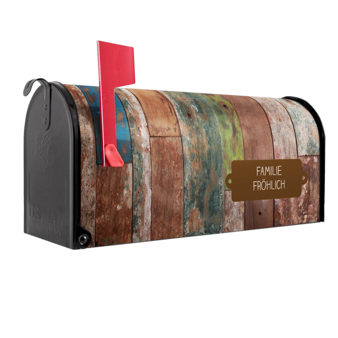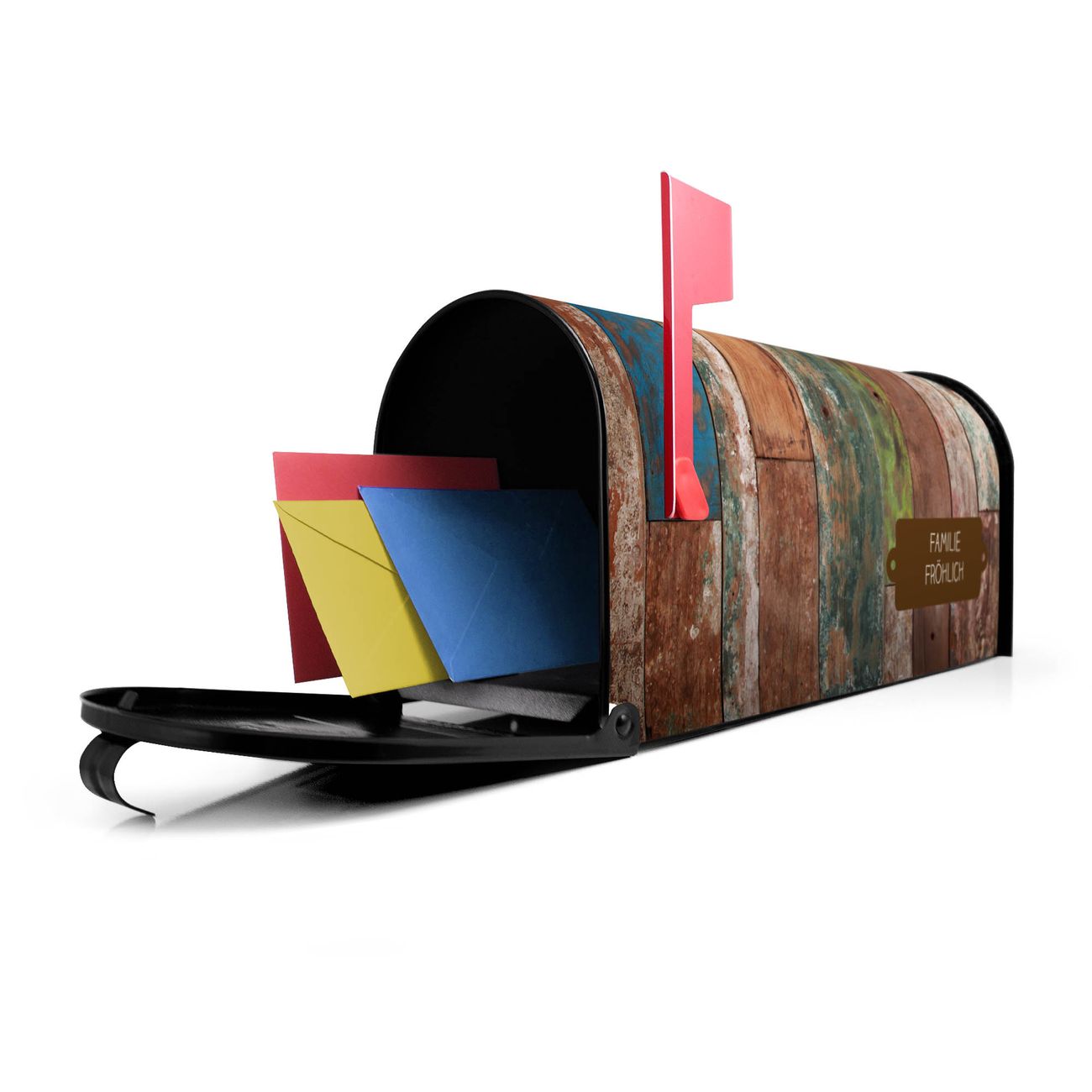 Unser amerikanischer Briefkasten mit dem Motiv Buntes Holz hat ein sehr ansprechendes und ausgefallenes Design, ist in der Grundfarbe weiß, grün oder schwarz erhältlich. Damit entlocken Sie Ihren Nachbarn und dem Postboten immer wieder ein Lächeln. Die Mailbox ist ein Original Import aus Mississippi USA und wird von unserer kleinen Manufaktur in Sachsen von Hand veredelt. Die US-Mailbox bietet ausreichend Platz auch für große Sendungen, eine Fahne die Ihnen Post anzeigt, wetterfestes und äußerst stabiles Material - so macht Post empfangen Freude.