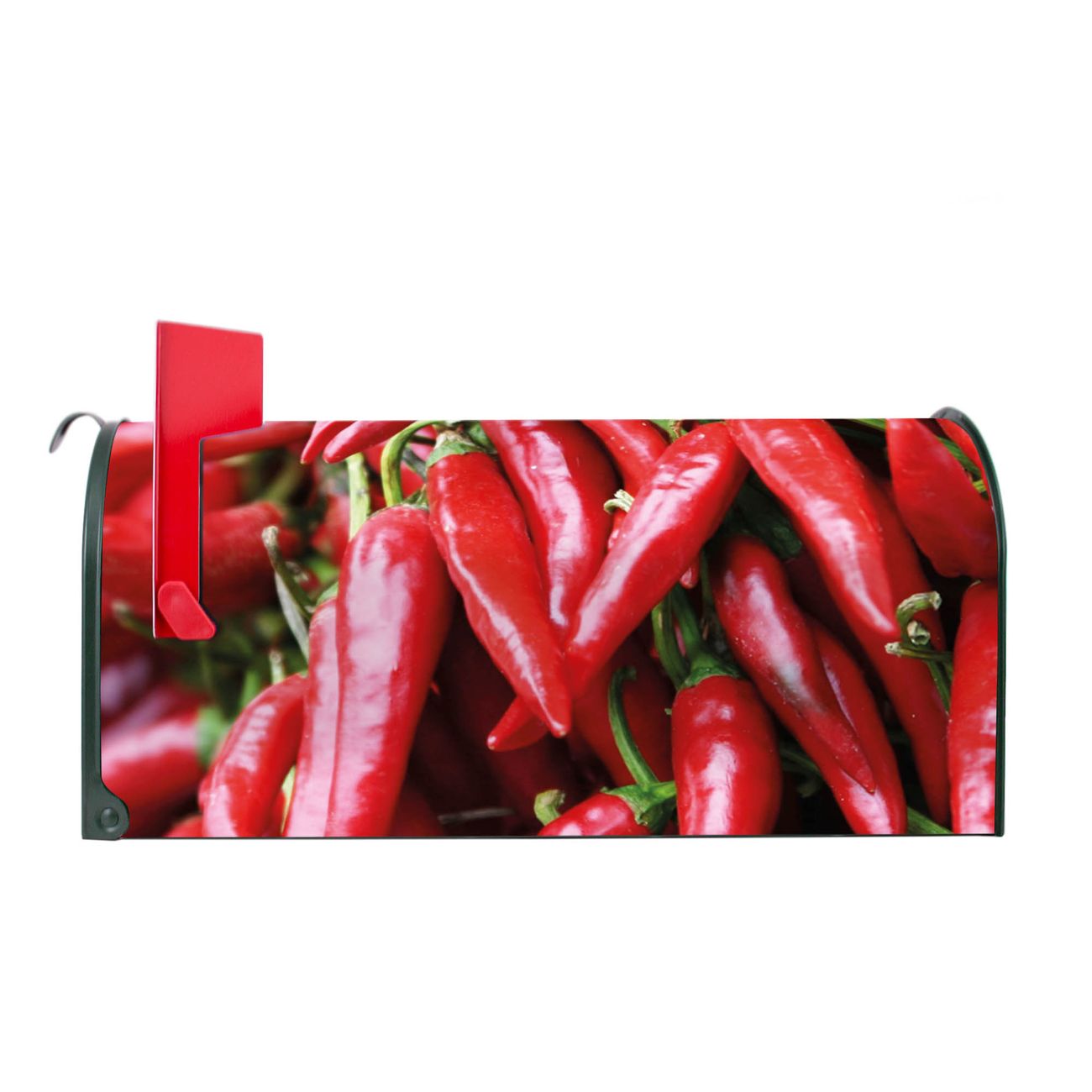Unser amerikanischer Briefkasten mit dem Motiv Chilli hat ein sehr ansprechendes und ausgefallenes Design, ist in der Grundfarbe weiß, grün oder schwarz erhältlich. Damit entlocken Sie Ihren Nachbarn und dem Postboten immer wieder ein Lächeln. Die Mailbox ist ein Original Import aus Mississippi USA und wird von unserer kleinen Manufaktur in Sachsen von Hand veredelt. Die US-Mailbox bietet ausreichend Platz auch für große Sendungen, eine Fahne die Ihnen Post anzeigt, wetterfestes und äußerst stabiles Material - so macht Post empfangen Freude.