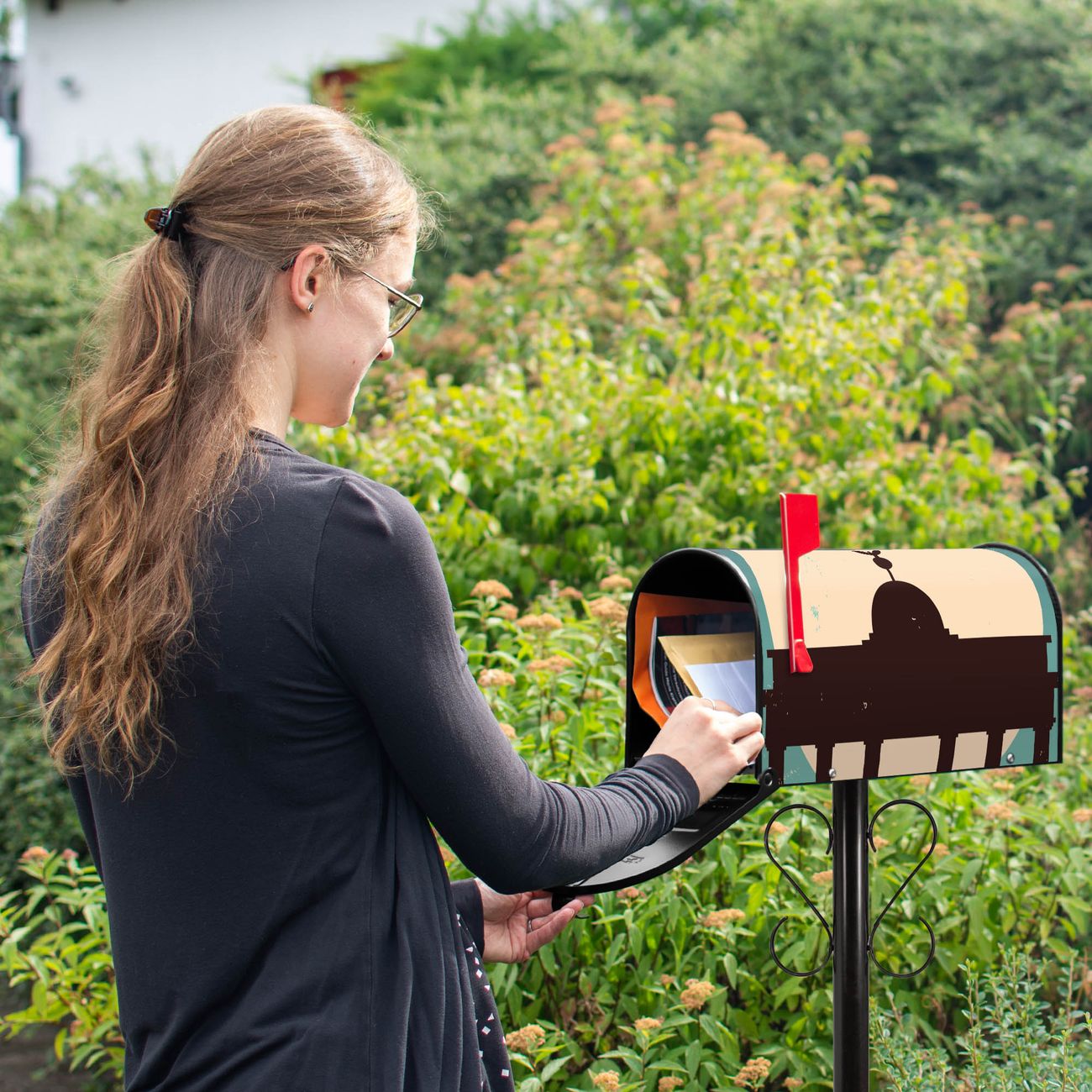Unser amerikanischer Briefkasten mit dem Motiv City Poster Berlin hat ein sehr ansprechendes und ausgefallenes Design, ist in der Grundfarbe weiß, grün oder schwarz erhältlich. Damit entlocken Sie Ihren Nachbarn und dem Postboten immer wieder ein Lächeln. Die Mailbox ist ein Original Import aus Mississippi USA und wird von unserer kleinen Manufaktur in Sachsen von Hand veredelt. Die US-Mailbox bietet ausreichend Platz auch für große Sendungen, eine Fahne die Ihnen Post anzeigt, wetterfestes und äußerst stabiles Material - so macht Post empfangen Freude.