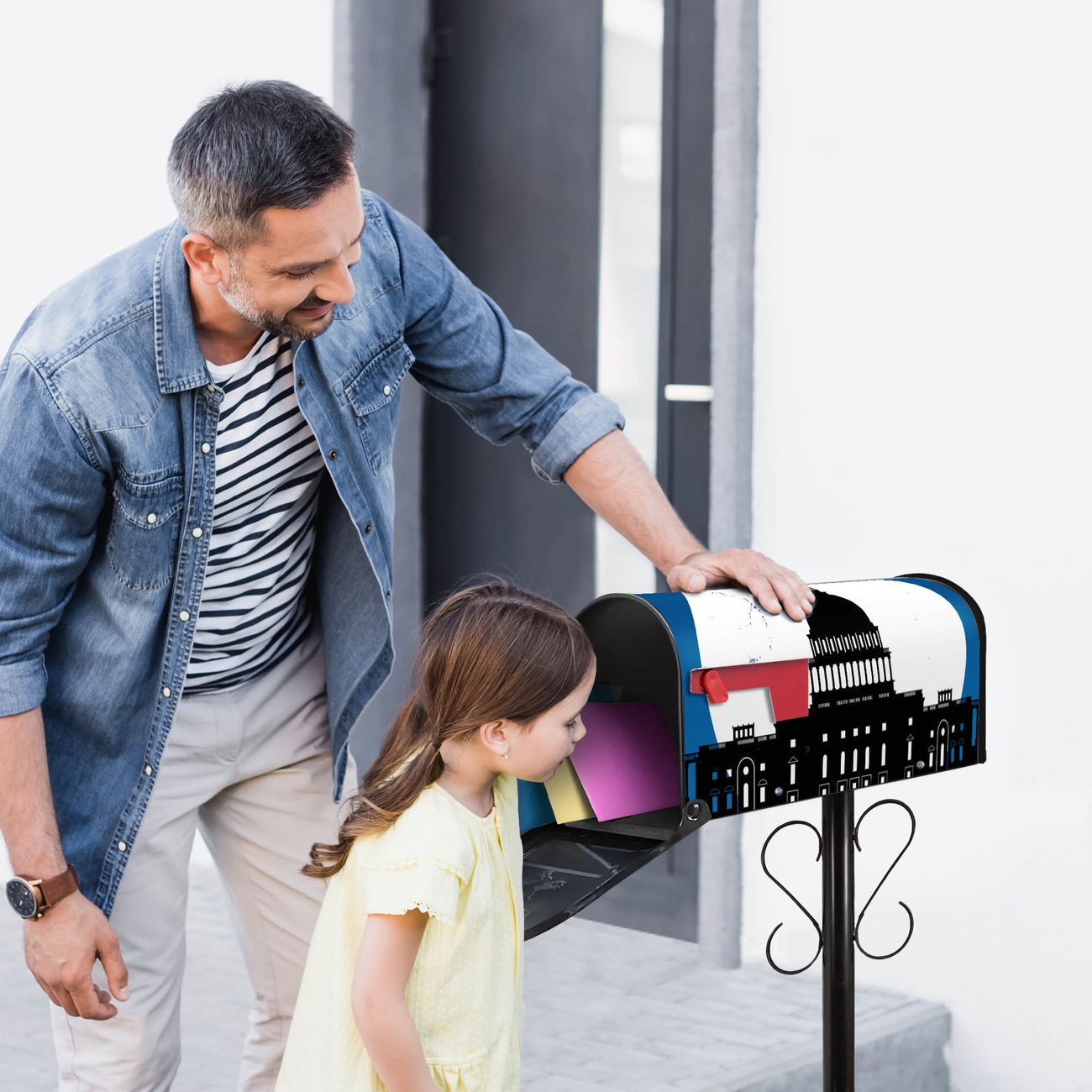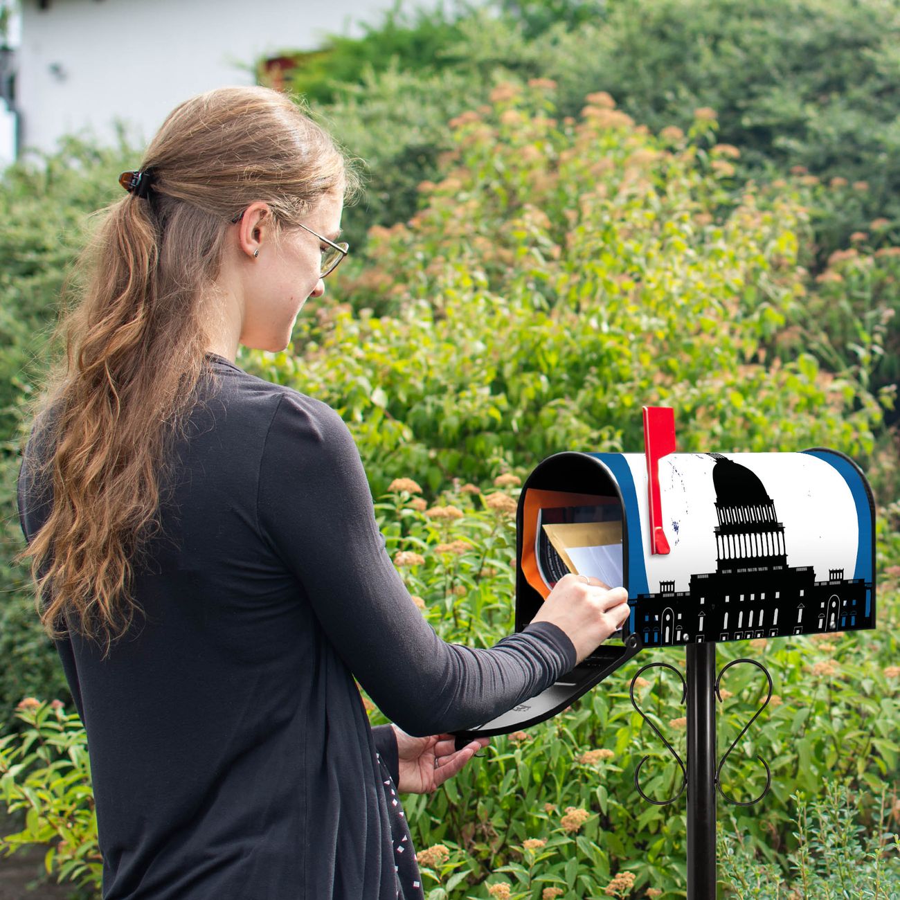 Unser amerikanischer Briefkasten mit dem Motiv City Poster Washington hat ein sehr ansprechendes und ausgefallenes Design, ist in der Grundfarbe weiß, grün oder schwarz erhältlich. Damit entlocken Sie Ihren Nachbarn und dem Postboten immer wieder ein Lächeln. Die Mailbox ist ein Original Import aus Mississippi USA und wird von unserer kleinen Manufaktur in Sachsen von Hand veredelt. Die US-Mailbox bietet ausreichend Platz auch für große Sendungen, eine Fahne die Ihnen Post anzeigt, wetterfestes und äußerst stabiles Material - so macht Post empfangen Freude.