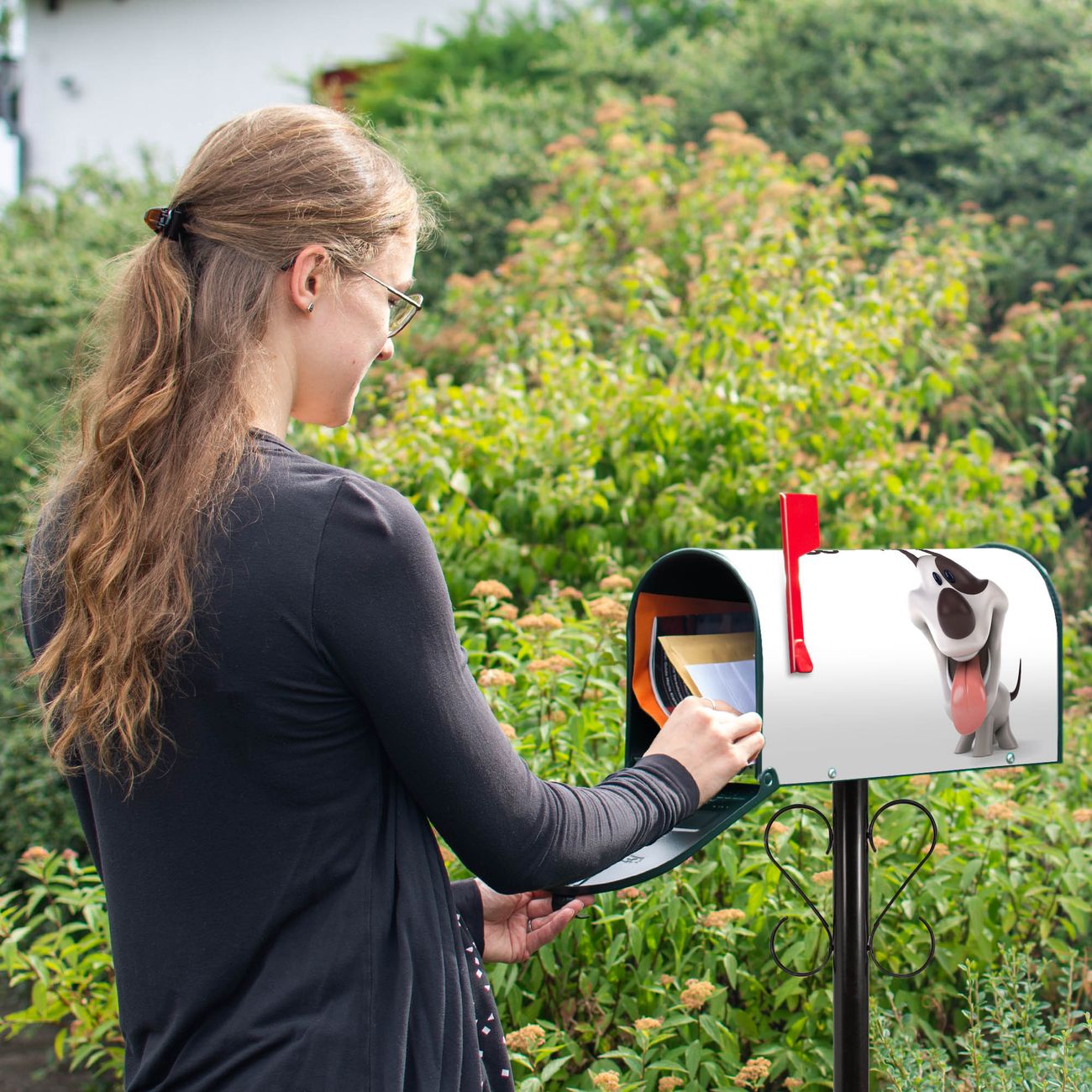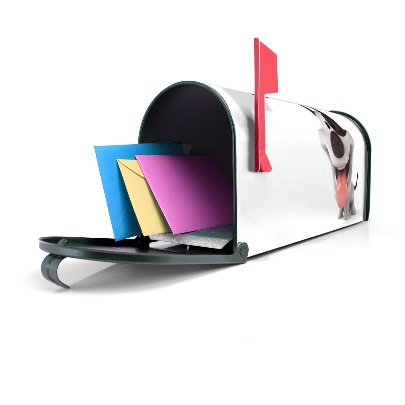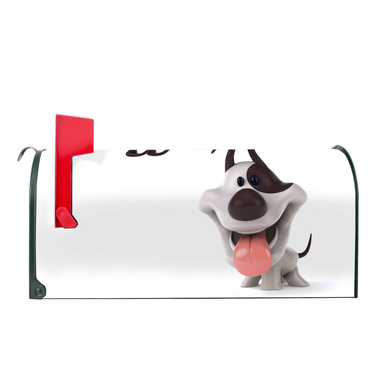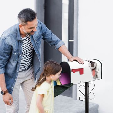 Unser amerikanischer Briefkasten mit dem Motiv Comic-Hund hat ein sehr ansprechendes und ausgefallenes Design, ist in der Grundfarbe weiß, grün oder schwarz erhältlich. Damit entlocken Sie Ihren Nachbarn und dem Postboten immer wieder ein Lächeln. Die Mailbox ist ein Original Import aus Mississippi USA und wird von unserer kleinen Manufaktur in Sachsen von Hand veredelt. Die US-Mailbox bietet ausreichend Platz auch für große Sendungen, eine Fahne die Ihnen Post anzeigt, wetterfestes und äußerst stabiles Material - so macht Post empfangen Freude.