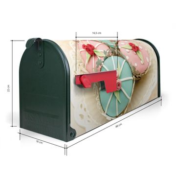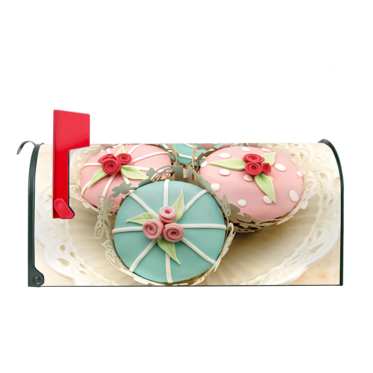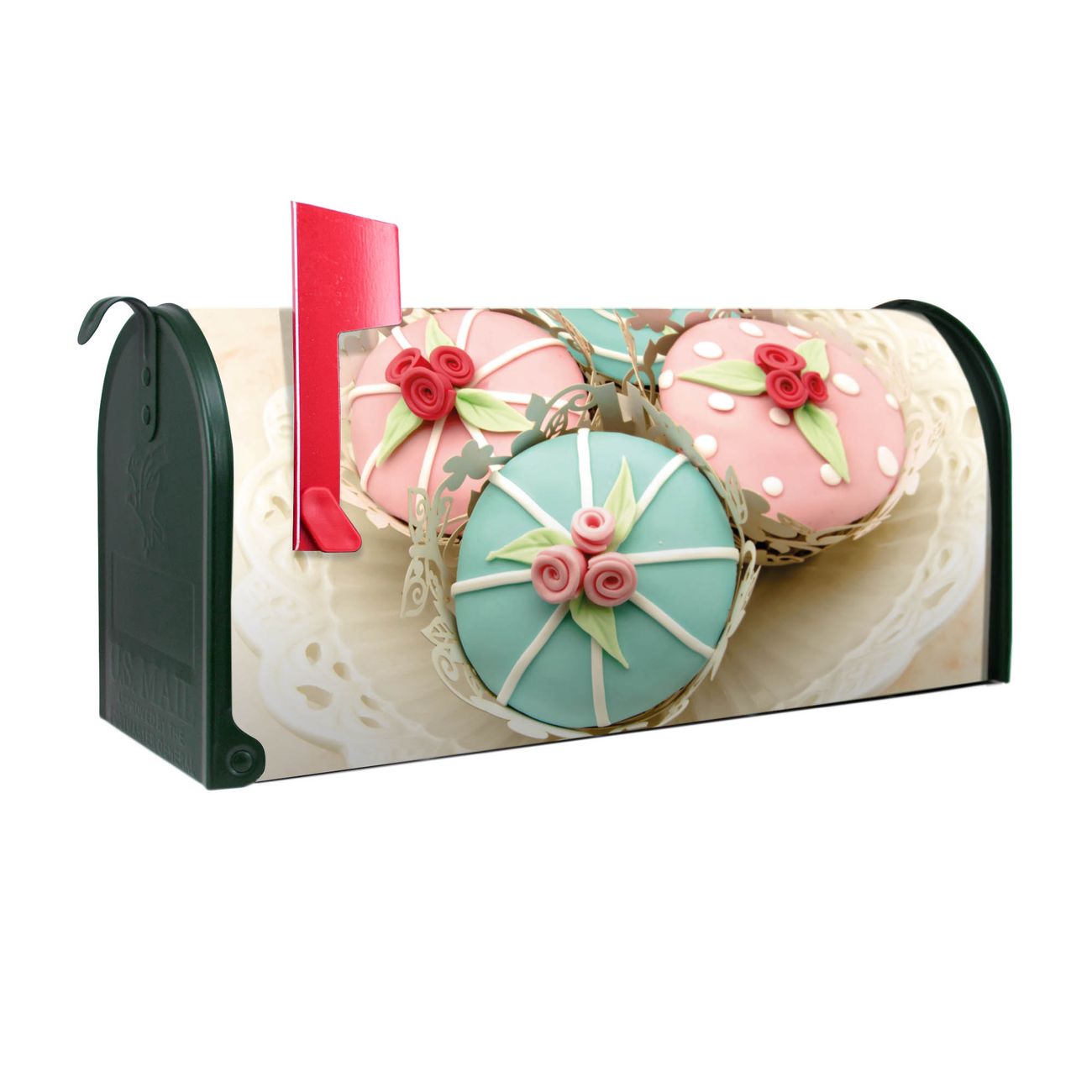 Der amerikanische Briefkasten von banjado mit Cupcakes Motiv bietet Ihnen ausreichend Fassungsvermögen, um große A4 Sendungen und Zeitschriften zu empfangen. Die typisch amerikanische rote Fahne zeigt Ihnen an, wenn Sie Post erhalten haben. Die US-Mailbox besteht aus verzinktem Stahlblech welches lackiert wurde und ist 48 x 22 x 16 CM (BxHxT) groß. Die Folie mit Motiv Cupcakes besteht aus einer wetter- und UV-resistenten Folie, die mit einem Schutzlaminat überzogen ist, sodass die US Mailbox zusätzlich vor Kratzern geschützt ist. An der Unterkante sind 4 Löcher je Seite um die Mailbox, typisch amerikanisch, an einem Holzpfahl oder einem Zaun zu befestigen. Auf Wunsch können Sie bei uns den passenden Standfuß oder die passende Wandhalterung kaufen um die US-Mailbox sicher zu befestigen. Wir bieten Ihnen ebenfalls Namensschilder, bereits beschriftet oder frei zu beschriften, und verschiedene selbst gestaltete Bitte-Keine-Werbung-Aufkleber.
