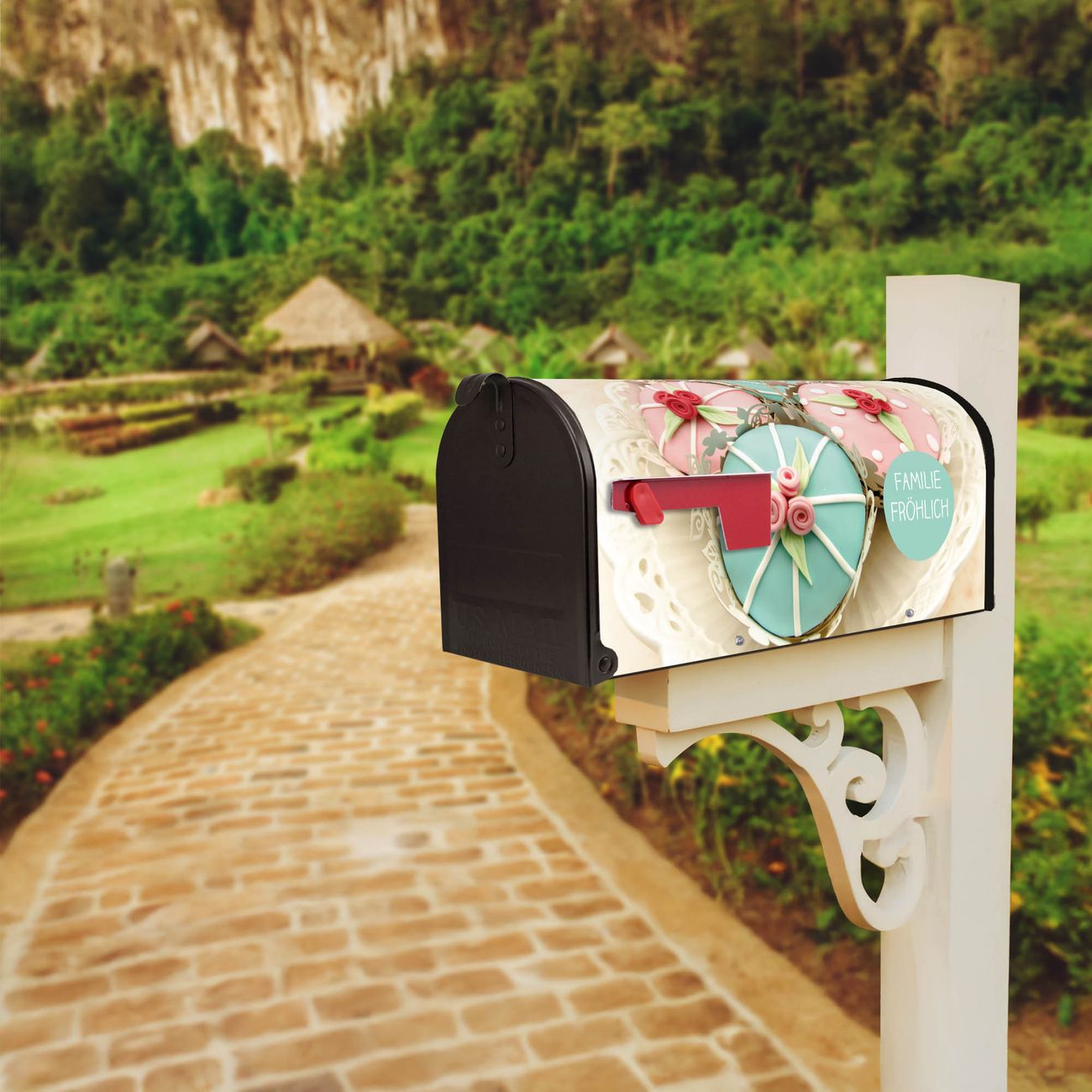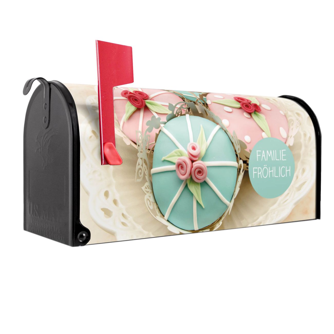 Unser amerikanischer Briefkasten mit dem Motiv Cupcakes hat ein sehr ansprechendes und ausgefallenes Design, ist in der Grundfarbe weiß, grün oder schwarz erhältlich. Damit entlocken Sie Ihren Nachbarn und dem Postboten immer wieder ein Lächeln. Die Mailbox ist ein Original Import aus Mississippi USA und wird von unserer kleinen Manufaktur in Sachsen von Hand veredelt. Die US-Mailbox bietet ausreichend Platz auch für große Sendungen, eine Fahne die Ihnen Post anzeigt, wetterfestes und äußerst stabiles Material - so macht Post empfangen Freude.