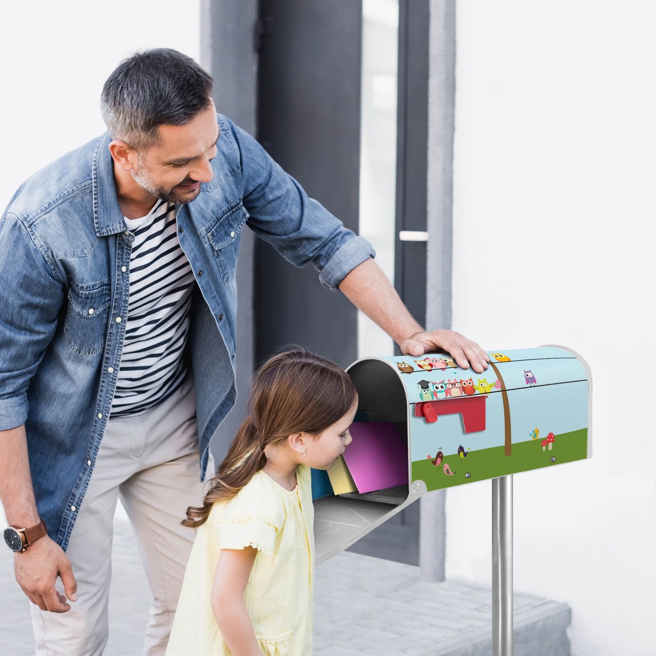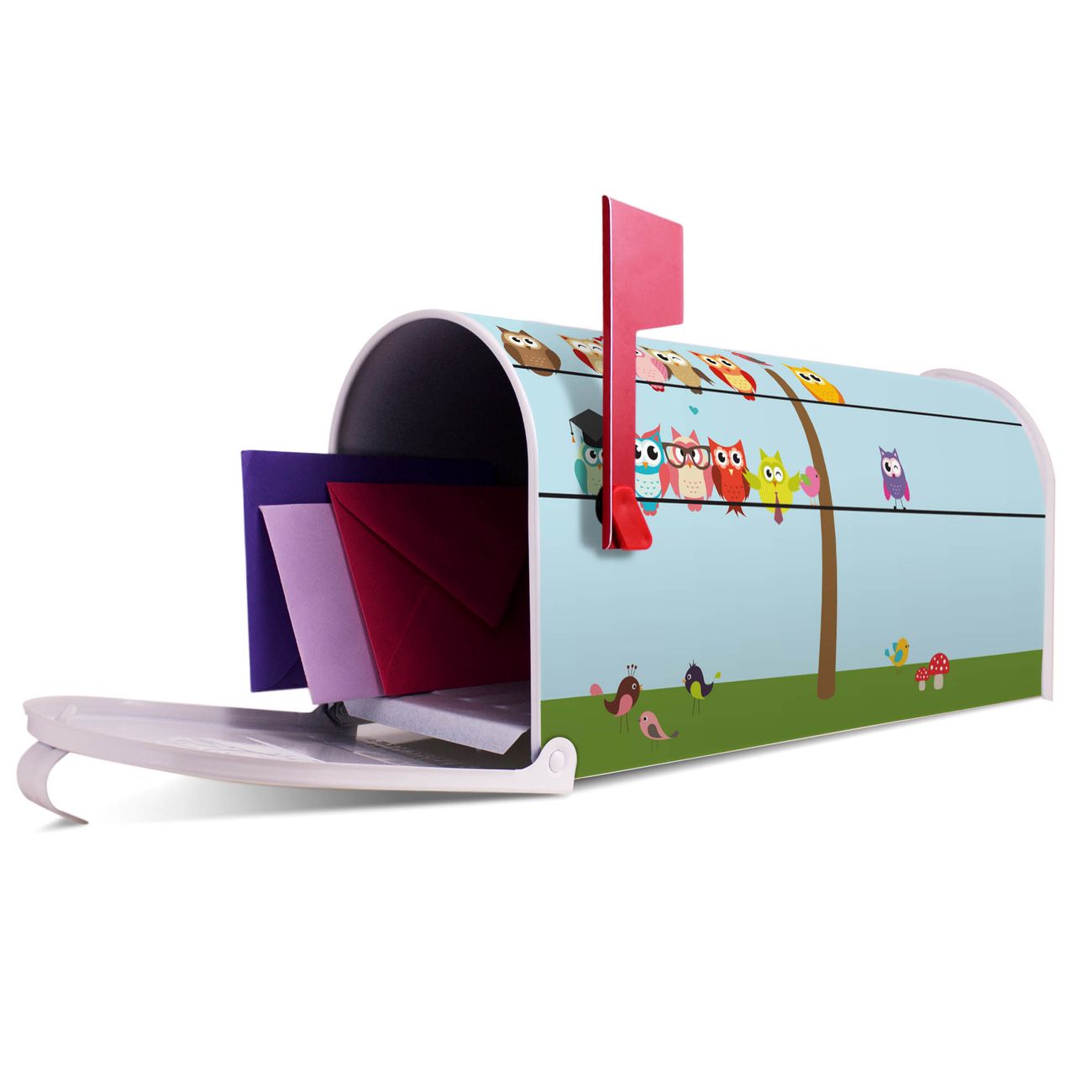 Unser amerikanischer Briefkasten mit dem Motiv Da Wären Wir hat ein sehr ansprechendes und ausgefallenes Design, ist in der Grundfarbe weiß, grün oder schwarz erhältlich. Damit entlocken Sie Ihren Nachbarn und dem Postboten immer wieder ein Lächeln. Die Mailbox ist ein Original Import aus Mississippi USA und wird von unserer kleinen Manufaktur in Sachsen von Hand veredelt. Die US-Mailbox bietet ausreichend Platz auch für große Sendungen, eine Fahne die Ihnen Post anzeigt, wetterfestes und äußerst stabiles Material - so macht Post empfangen Freude.