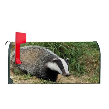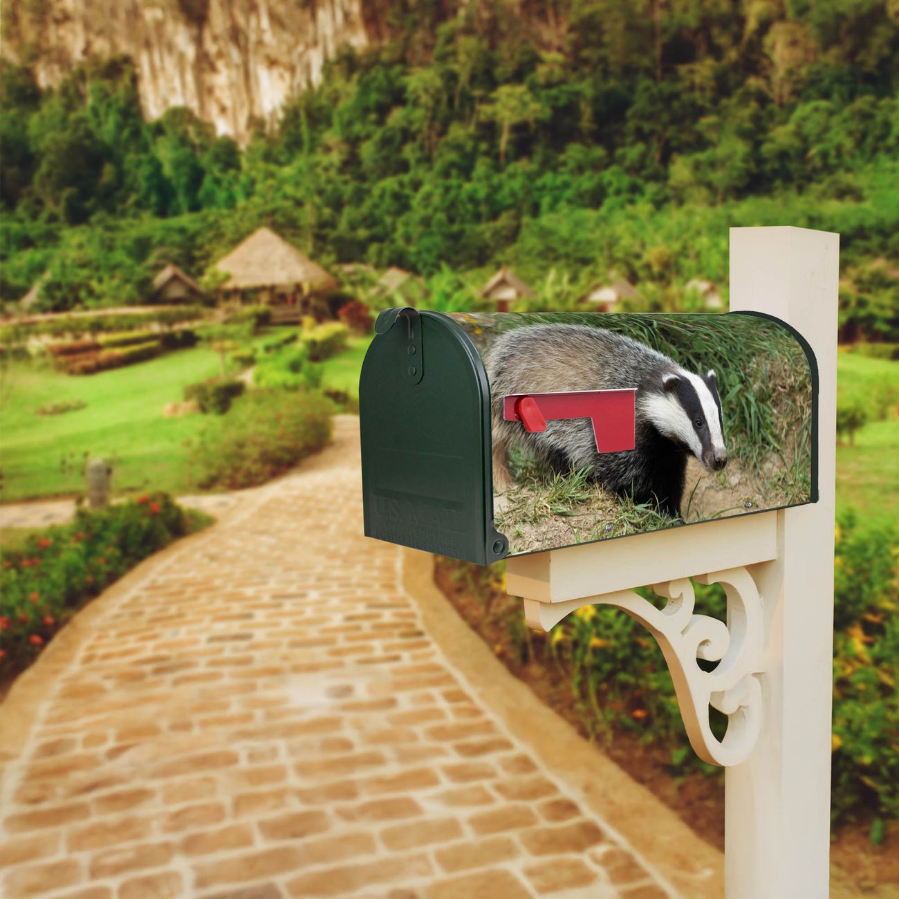 Der amerikanische Briefkasten von banjado mit Dachs Motiv bietet Ihnen ausreichend Fassungsvermögen, um große A4 Sendungen und Zeitschriften zu empfangen. Die typisch amerikanische rote Fahne zeigt Ihnen an, wenn Sie Post erhalten haben. Die US-Mailbox besteht aus verzinktem Stahlblech welches lackiert wurde und ist 48 x 22 x 16 CM (BxHxT) groß. Die Folie mit Motiv Dachs besteht aus einer wetter- und UV-resistenten Folie, die mit einem Schutzlaminat überzogen ist, sodass die US Mailbox zusätzlich vor Kratzern geschützt ist. An der Unterkante sind 4 Löcher je Seite um die Mailbox, typisch amerikanisch, an einem Holzpfahl oder einem Zaun zu befestigen. Auf Wunsch können Sie bei uns den passenden Standfuß oder die passende Wandhalterung kaufen um die US-Mailbox sicher zu befestigen. Wir bieten Ihnen ebenfalls Namensschilder, bereits beschriftet oder frei zu beschriften, und verschiedene selbst gestaltete Bitte-Keine-Werbung-Aufkleber.