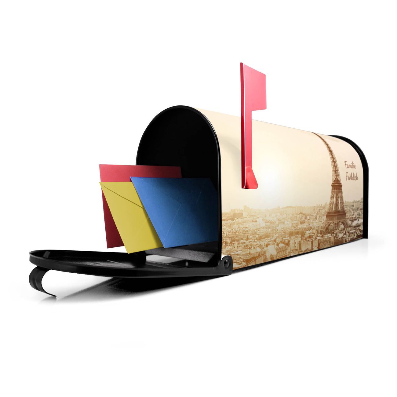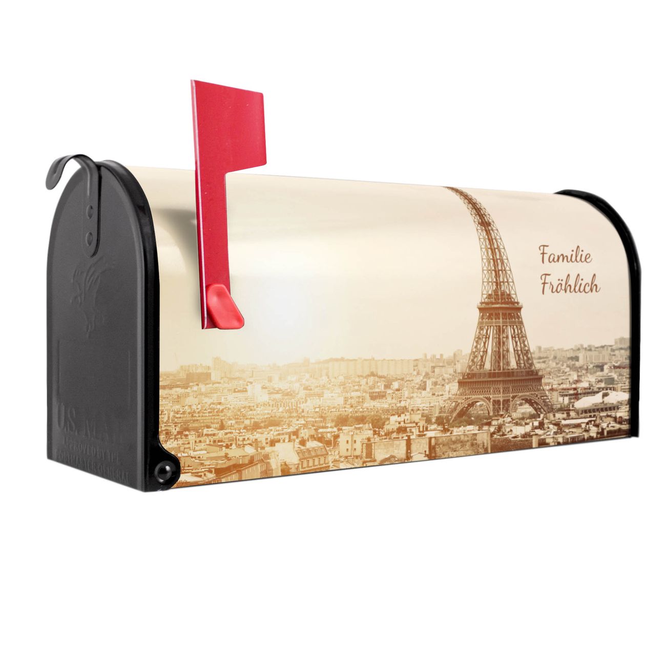 Unser amerikanischer Briefkasten mit dem Motiv Dächer Von Paris hat ein sehr ansprechendes und ausgefallenes Design, ist in der Grundfarbe weiß, grün oder schwarz erhältlich. Damit entlocken Sie Ihren Nachbarn und dem Postboten immer wieder ein Lächeln. Die Mailbox ist ein Original Import aus Mississippi USA und wird von unserer kleinen Manufaktur in Sachsen von Hand veredelt. Die US-Mailbox bietet ausreichend Platz auch für große Sendungen, eine Fahne die Ihnen Post anzeigt, wetterfestes und äußerst stabiles Material - so macht Post empfangen Freude.