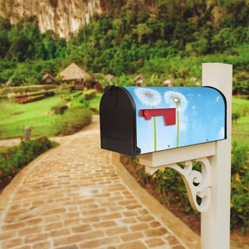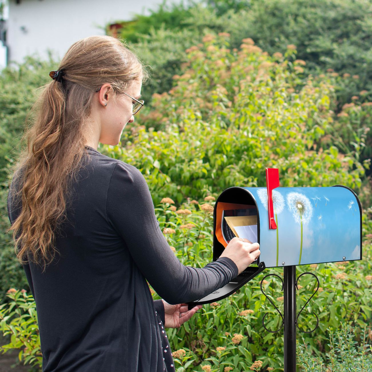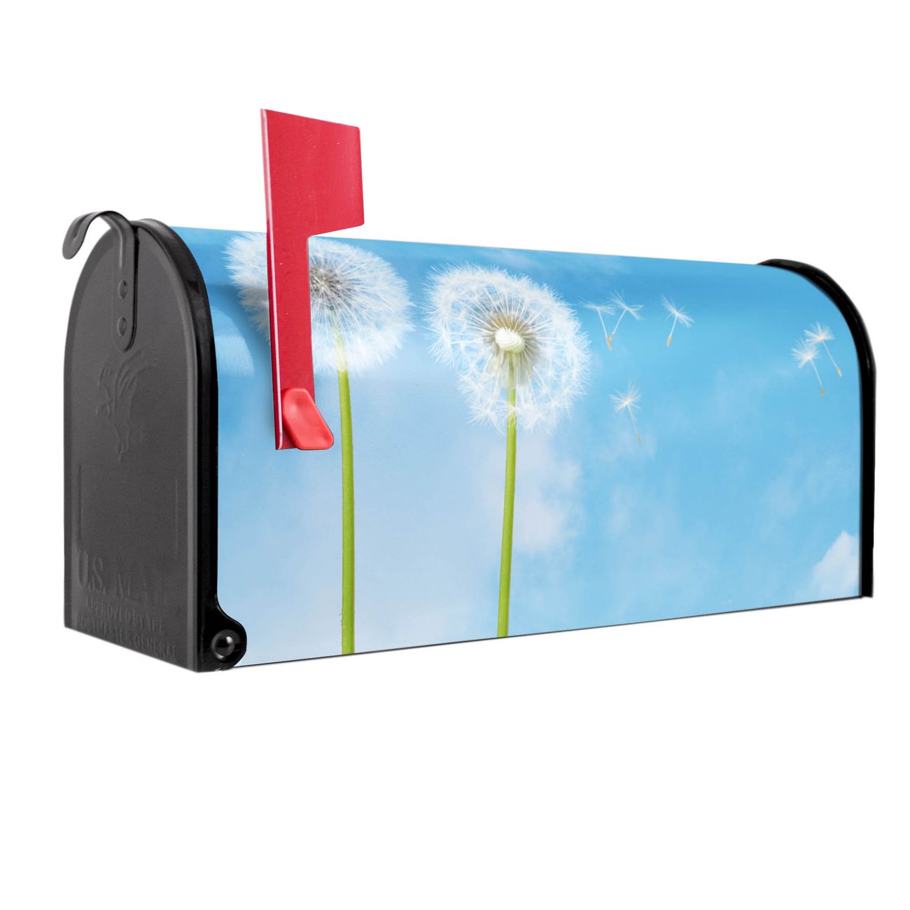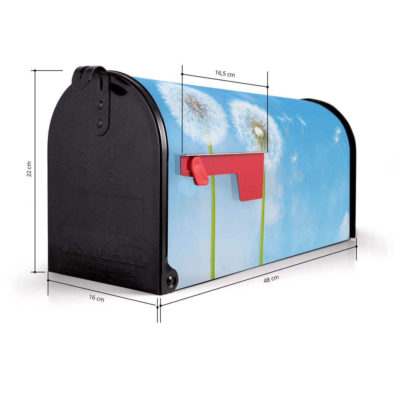 Der amerikanische Briefkasten von banjado mit Dandelion Motiv bietet Ihnen ausreichend Fassungsvermögen, um große A4 Sendungen und Zeitschriften zu empfangen. Die typisch amerikanische rote Fahne zeigt Ihnen an, wenn Sie Post erhalten haben. Die US-Mailbox besteht aus verzinktem Stahlblech welches lackiert wurde und ist 48 x 22 x 16 CM (BxHxT) groß. Die Folie mit Motiv Dandelion besteht aus einer wetter- und UV-resistenten Folie, die mit einem Schutzlaminat überzogen ist, sodass die US Mailbox zusätzlich vor Kratzern geschützt ist. An der Unterkante sind 4 Löcher je Seite um die Mailbox, typisch amerikanisch, an einem Holzpfahl oder einem Zaun zu befestigen. Auf Wunsch können Sie bei uns den passenden Standfuß oder die passende Wandhalterung kaufen um die US-Mailbox sicher zu befestigen. Wir bieten Ihnen ebenfalls Namensschilder, bereits beschriftet oder frei zu beschriften, und verschiedene selbst gestaltete Bitte-Keine-Werbung-Aufkleber.