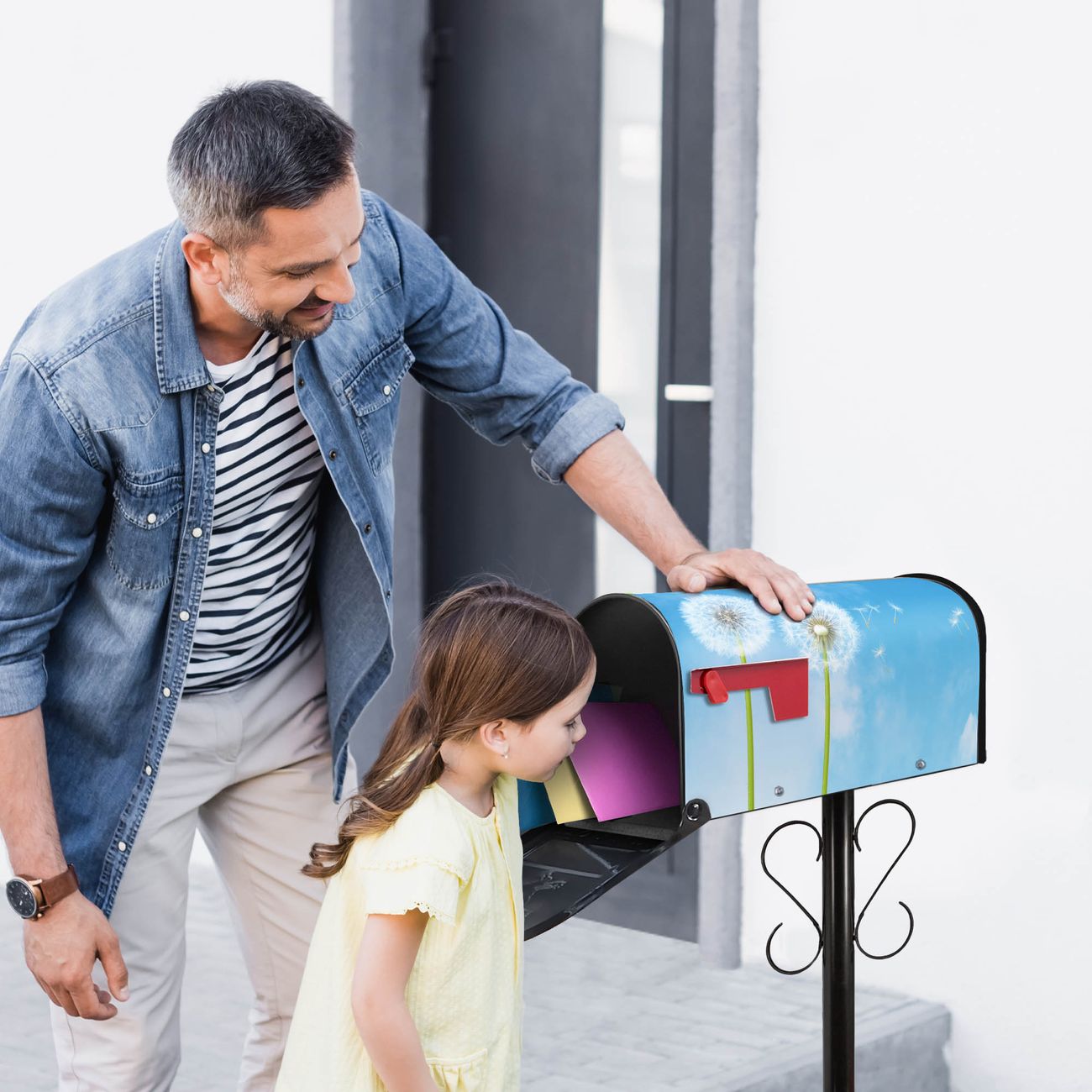 Unser amerikanischer Briefkasten mit dem Motiv Dandelion hat ein sehr ansprechendes und ausgefallenes Design, ist in der Grundfarbe weiß, grün oder schwarz erhältlich. Damit entlocken Sie Ihren Nachbarn und dem Postboten immer wieder ein Lächeln. Die Mailbox ist ein Original Import aus Mississippi USA und wird von unserer kleinen Manufaktur in Sachsen von Hand veredelt. Die US-Mailbox bietet ausreichend Platz auch für große Sendungen, eine Fahne die Ihnen Post anzeigt, wetterfestes und äußerst stabiles Material - so macht Post empfangen Freude.