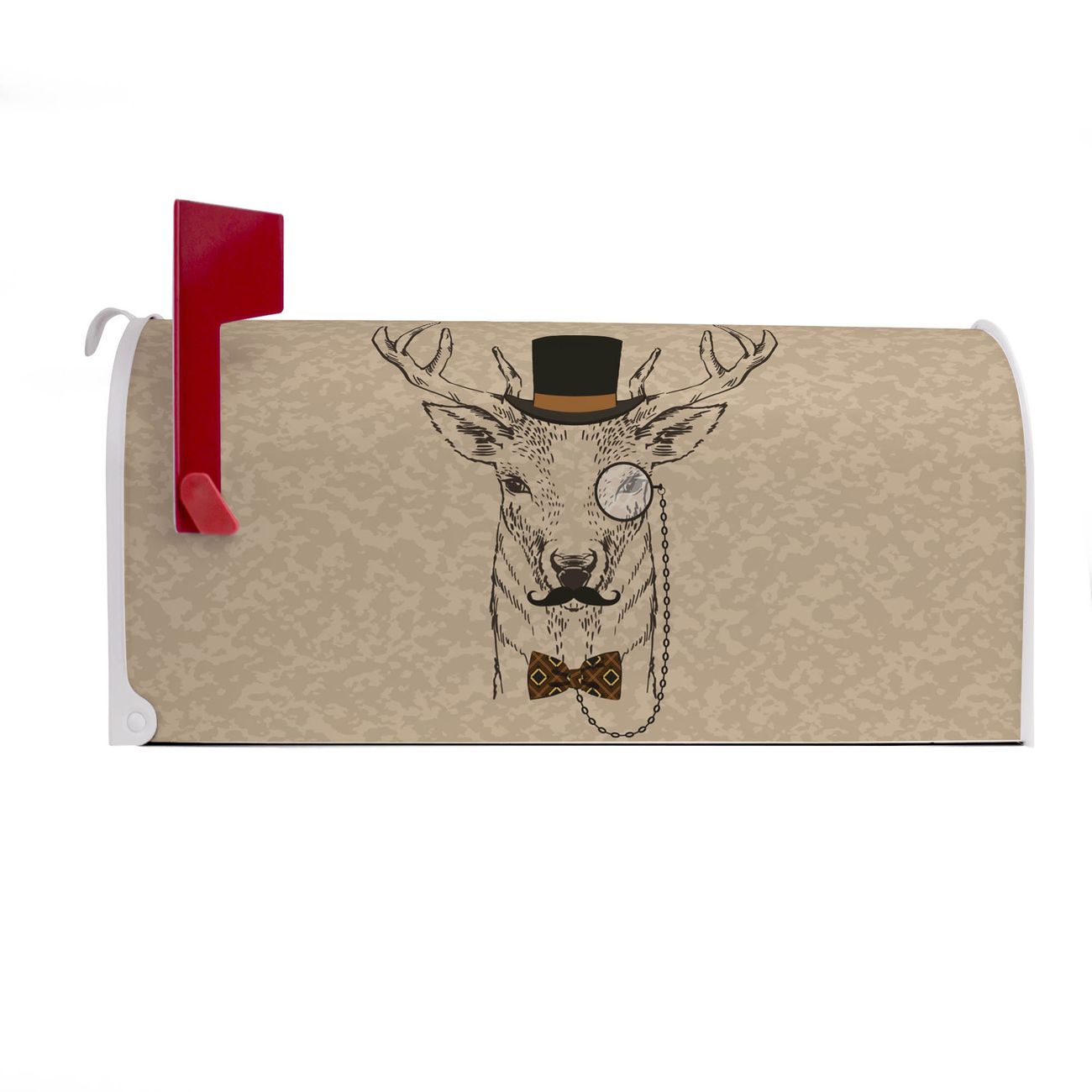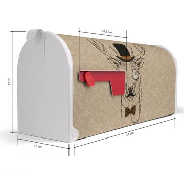 Der amerikanische Briefkasten von banjado mit Direktor Hirsch Motiv bietet Ihnen ausreichend Fassungsvermögen, um große A4 Sendungen und Zeitschriften zu empfangen. Die typisch amerikanische rote Fahne zeigt Ihnen an, wenn Sie Post erhalten haben. Die US-Mailbox besteht aus verzinktem Stahlblech welches lackiert wurde und ist 48 x 22 x 16 CM (BxHxT) groß. Die Folie mit Motiv Direktor Hirsch besteht aus einer wetter- und UV-resistenten Folie, die mit einem Schutzlaminat überzogen ist, sodass die US Mailbox zusätzlich vor Kratzern geschützt ist. An der Unterkante sind 4 Löcher je Seite um die Mailbox, typisch amerikanisch, an einem Holzpfahl oder einem Zaun zu befestigen. Auf Wunsch können Sie bei uns den passenden Standfuß oder die passende Wandhalterung kaufen um die US-Mailbox sicher zu befestigen. Wir bieten Ihnen ebenfalls Namensschilder, bereits beschriftet oder frei zu beschriften, und verschiedene selbst gestaltete Bitte-Keine-Werbung-Aufkleber.