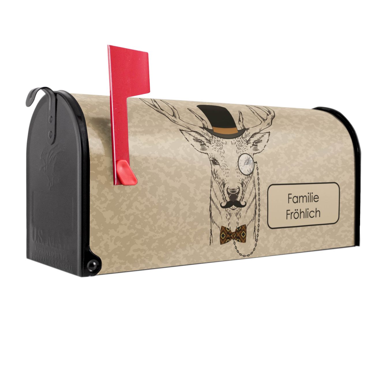 Unser amerikanischer Briefkasten mit dem Motiv Direktor Hirsch hat ein sehr ansprechendes und ausgefallenes Design, ist in der Grundfarbe weiß, grün oder schwarz erhältlich. Damit entlocken Sie Ihren Nachbarn und dem Postboten immer wieder ein Lächeln. Die Mailbox ist ein Original Import aus Mississippi USA und wird von unserer kleinen Manufaktur in Sachsen von Hand veredelt. Die US-Mailbox bietet ausreichend Platz auch für große Sendungen, eine Fahne die Ihnen Post anzeigt, wetterfestes und äußerst stabiles Material - so macht Post empfangen Freude.