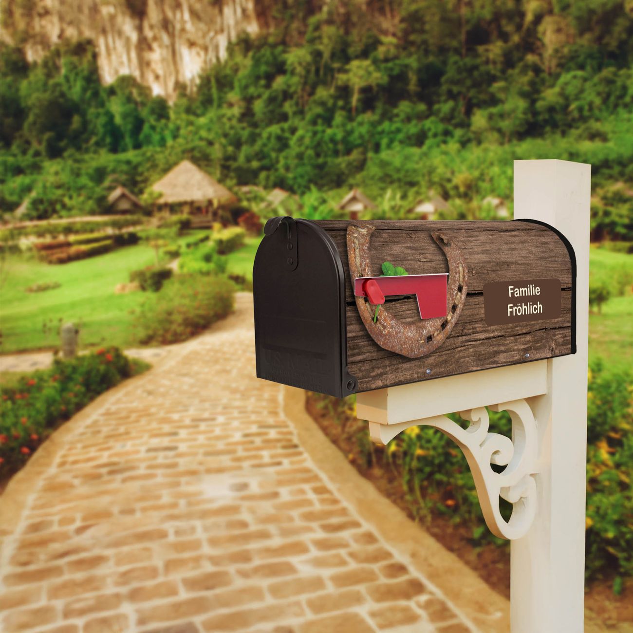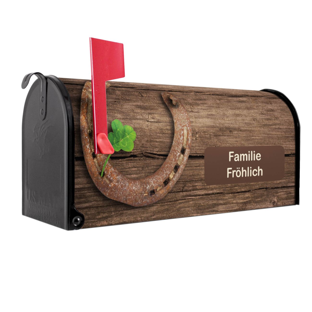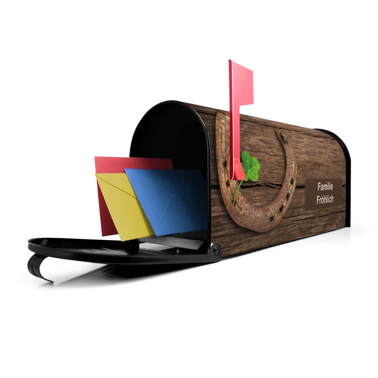 Der amerikanische Briefkasten von banjado mit Doppeltes Glück Motiv bietet Ihnen ausreichend Fassungsvermögen, um große A4 Sendungen und Zeitschriften zu empfangen. Die typisch amerikanische rote Fahne zeigt Ihnen an, wenn Sie Post erhalten haben. Die US-Mailbox besteht aus verzinktem Stahlblech welches lackiert wurde und ist 48 x 22 x 16 CM (BxHxT) groß. Die Folie mit Motiv Doppeltes Glück besteht aus einer wetter- und UV-resistenten Folie, die mit einem Schutzlaminat überzogen ist, sodass die US Mailbox zusätzlich vor Kratzern geschützt ist. An der Unterkante sind 4 Löcher je Seite um die Mailbox, typisch amerikanisch, an einem Holzpfahl oder einem Zaun zu befestigen. Auf Wunsch können Sie bei uns den passenden Standfuß oder die passende Wandhalterung kaufen um die US-Mailbox sicher zu befestigen. Wir bieten Ihnen ebenfalls Namensschilder, bereits beschriftet oder frei zu beschriften, und verschiedene selbst gestaltete Bitte-Keine-Werbung-Aufkleber.