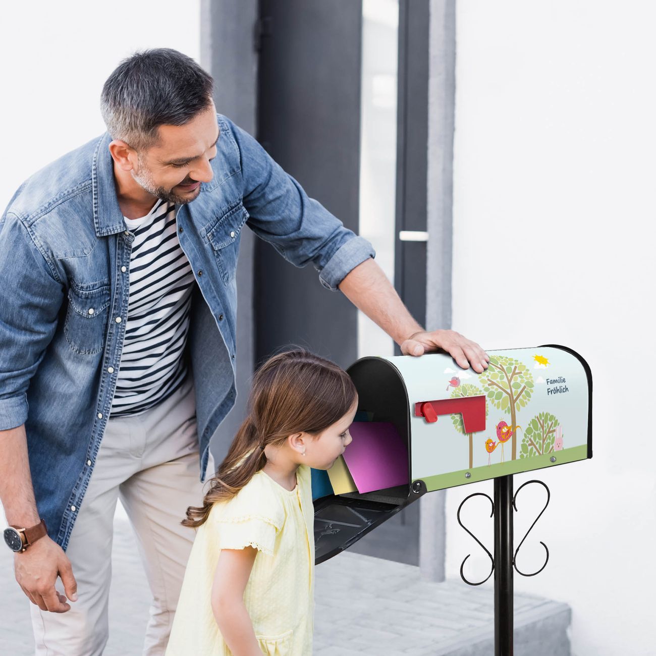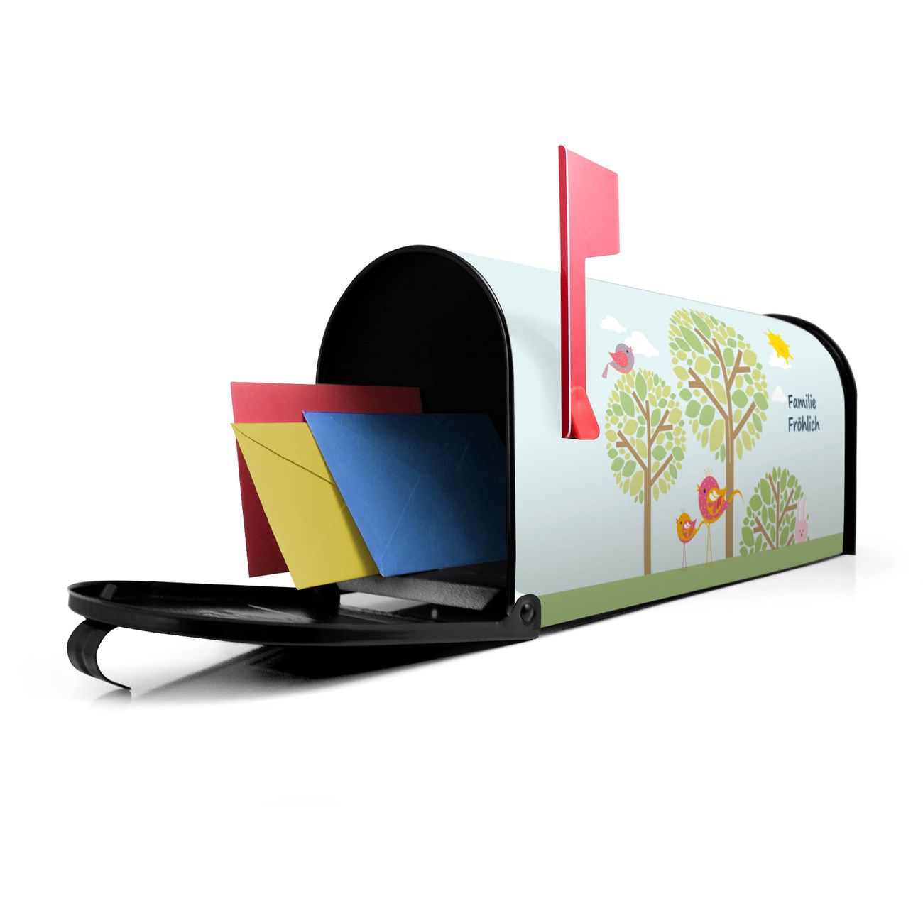 Unser amerikanischer Briefkasten mit dem Motiv Drei Bäume hat ein sehr ansprechendes und ausgefallenes Design, ist in der Grundfarbe weiß, grün oder schwarz erhältlich. Damit entlocken Sie Ihren Nachbarn und dem Postboten immer wieder ein Lächeln. Die Mailbox ist ein Original Import aus Mississippi USA und wird von unserer kleinen Manufaktur in Sachsen von Hand veredelt. Die US-Mailbox bietet ausreichend Platz auch für große Sendungen, eine Fahne die Ihnen Post anzeigt, wetterfestes und äußerst stabiles Material - so macht Post empfangen Freude.