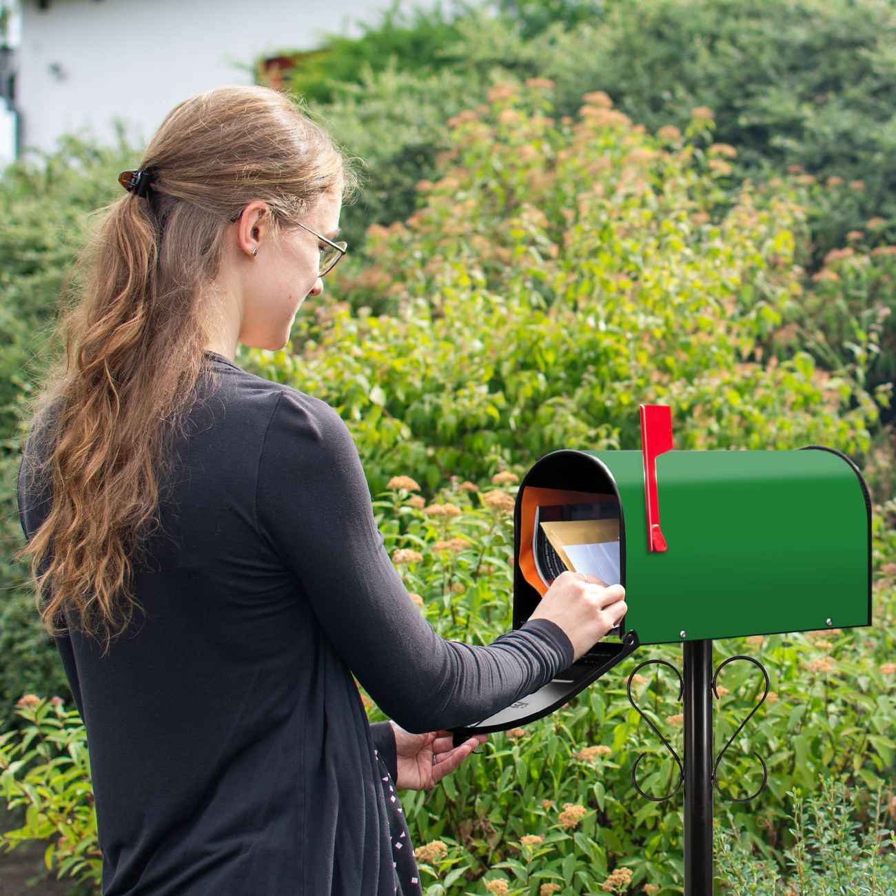 Unser amerikanischer Briefkasten mit dem Farbe Grün hat ein sehr ansprechendes und ausgefallenes Design, ist in der Grundfarbe weiß, grün oder schwarz erhältlich. Damit entlocken Sie Ihren Nachbarn und dem Postboten immer wieder ein Lächeln. Die Mailbox ist ein Original Import aus Mississippi USA und wird von unserer kleinen Manufaktur in Sachsen von Hand veredelt. Die US-Mailbox bietet ausreichend Platz auch für große Sendungen, eine Fahne die Ihnen Post anzeigt, wetterfestes und äußerst stabiles Material - so macht Post empfangen Freude.