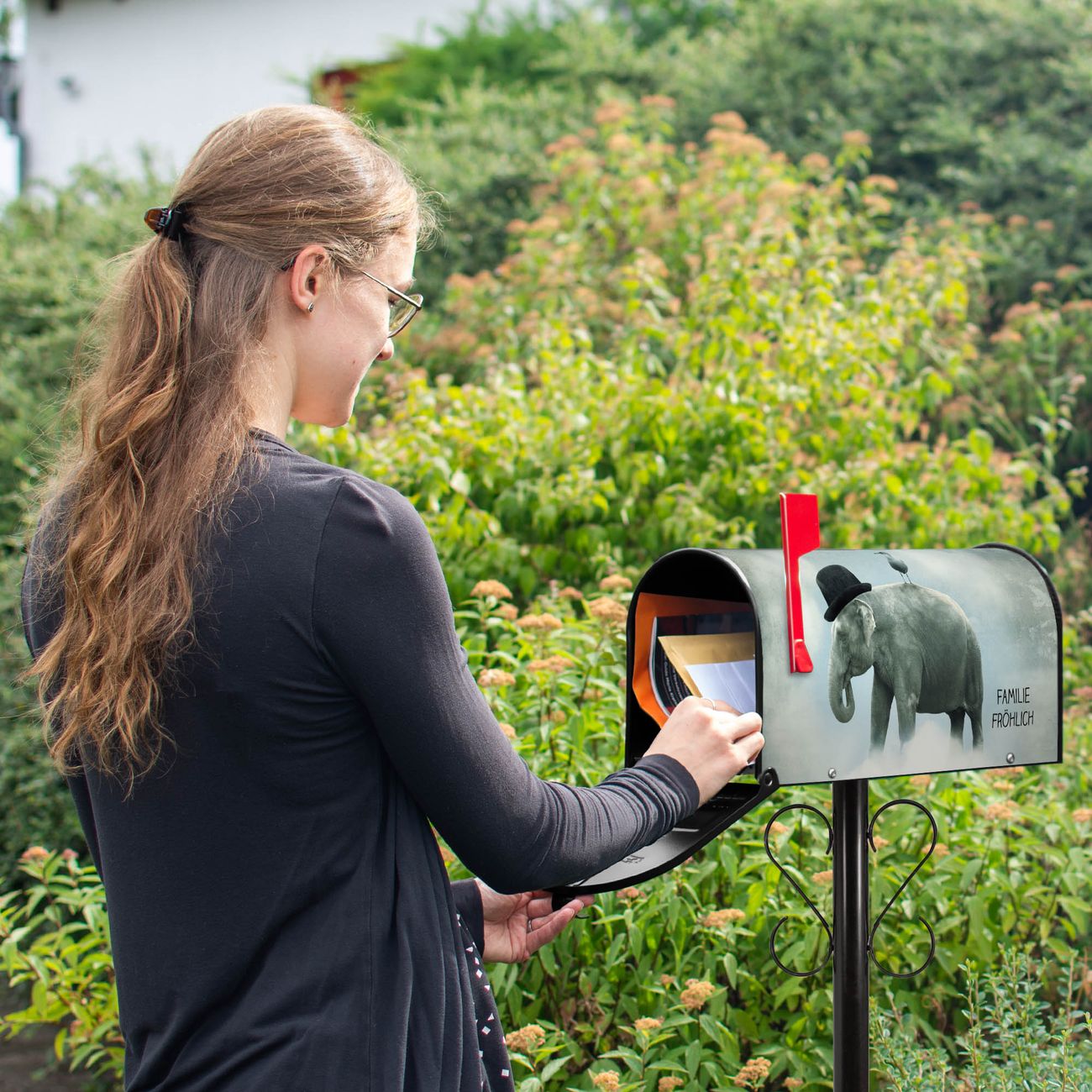 Unser amerikanischer Briefkasten mit dem Motiv Elefant und Möwe hat ein sehr ansprechendes und ausgefallenes Design, ist in der Grundfarbe weiß, grün oder schwarz erhältlich. Damit entlocken Sie Ihren Nachbarn und dem Postboten immer wieder ein Lächeln. Die Mailbox ist ein Original Import aus Mississippi USA und wird von unserer kleinen Manufaktur in Sachsen von Hand veredelt. Die US-Mailbox bietet ausreichend Platz auch für große Sendungen, eine Fahne die Ihnen Post anzeigt, wetterfestes und äußerst stabiles Material - so macht Post empfangen Freude.