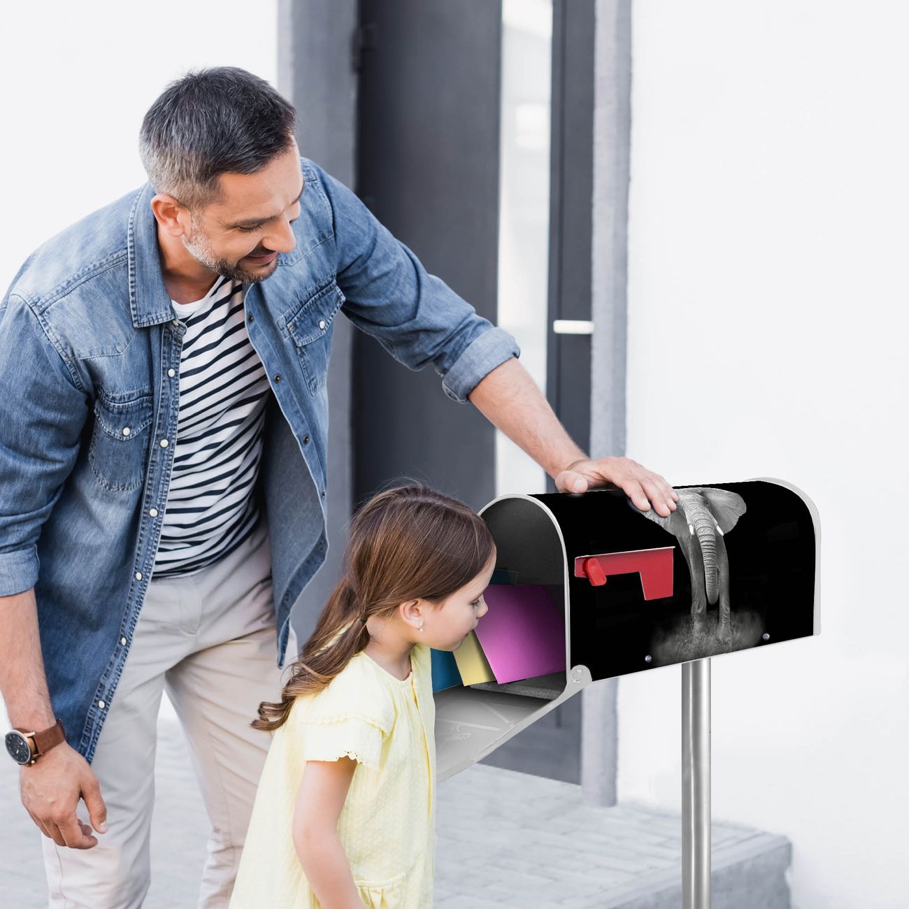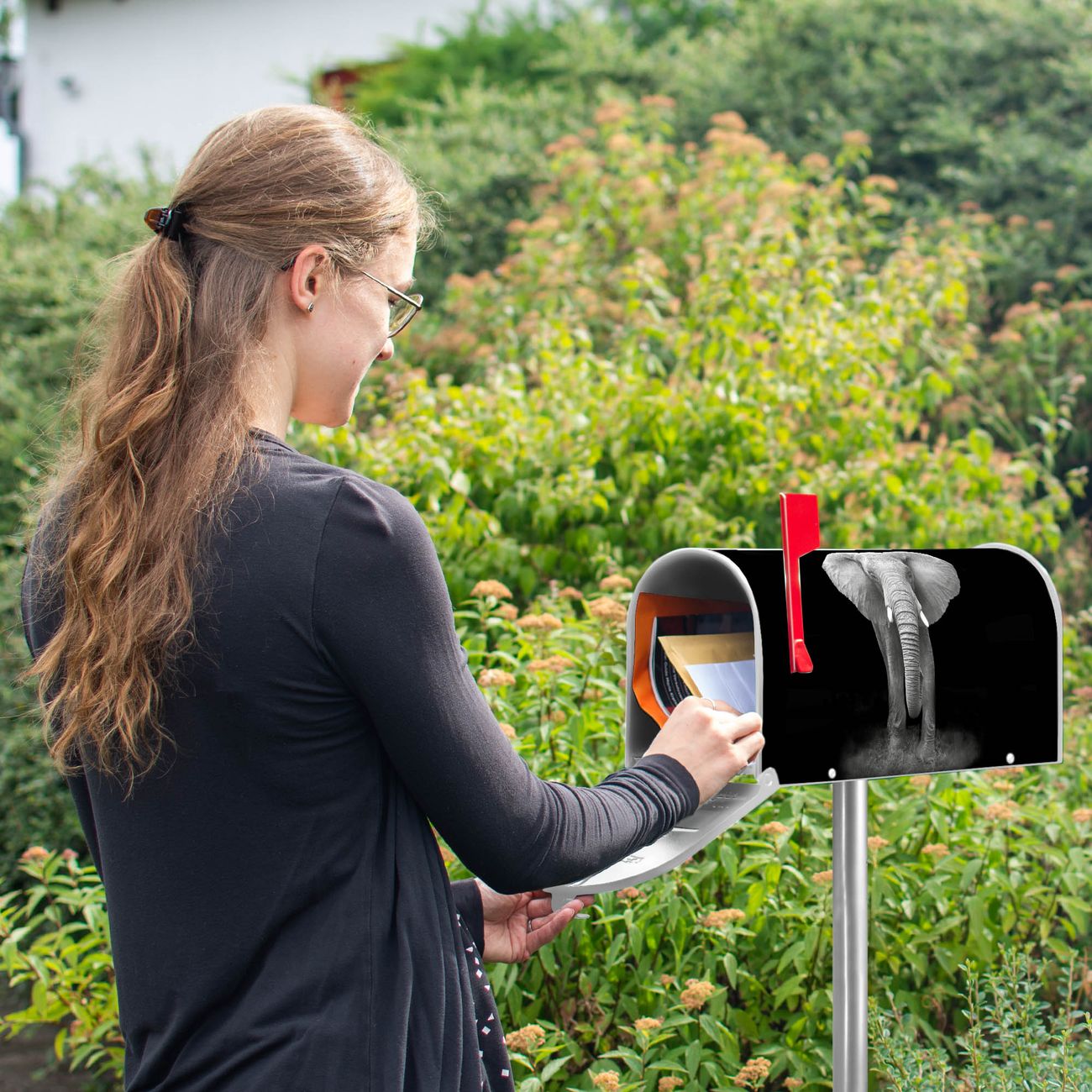 Unser amerikanischer Briefkasten mit dem Motiv Ella hat ein sehr ansprechendes und ausgefallenes Design, ist in der Grundfarbe weiß, grün oder schwarz erhältlich. Damit entlocken Sie Ihren Nachbarn und dem Postboten immer wieder ein Lächeln. Die Mailbox ist ein Original Import aus Mississippi USA und wird von unserer kleinen Manufaktur in Sachsen von Hand veredelt. Die US-Mailbox bietet ausreichend Platz auch für große Sendungen, eine Fahne die Ihnen Post anzeigt, wetterfestes und äußerst stabiles Material - so macht Post empfangen Freude.