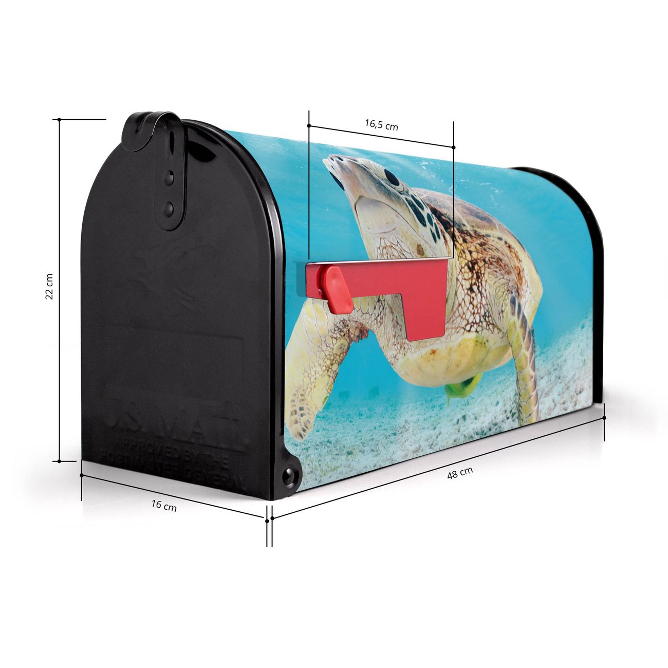 Der amerikanische Briefkasten von banjado mit Elvis Motiv bietet Ihnen ausreichend Fassungsvermögen, um große A4 Sendungen und Zeitschriften zu empfangen. Die typisch amerikanische rote Fahne zeigt Ihnen an, wenn Sie Post erhalten haben. Die US-Mailbox besteht aus verzinktem Stahlblech welches lackiert wurde und ist 48 x 22 x 16 CM (BxHxT) groß. Die Folie mit Motiv Elvis besteht aus einer wetter- und UV-resistenten Folie, die mit einem Schutzlaminat überzogen ist, sodass die US Mailbox zusätzlich vor Kratzern geschützt ist. An der Unterkante sind 4 Löcher je Seite um die Mailbox, typisch amerikanisch, an einem Holzpfahl oder einem Zaun zu befestigen. Auf Wunsch können Sie bei uns den passenden Standfuß oder die passende Wandhalterung kaufen um die US-Mailbox sicher zu befestigen. Wir bieten Ihnen ebenfalls Namensschilder, bereits beschriftet oder frei zu beschriften, und verschiedene selbst gestaltete Bitte-Keine-Werbung-Aufkleber.