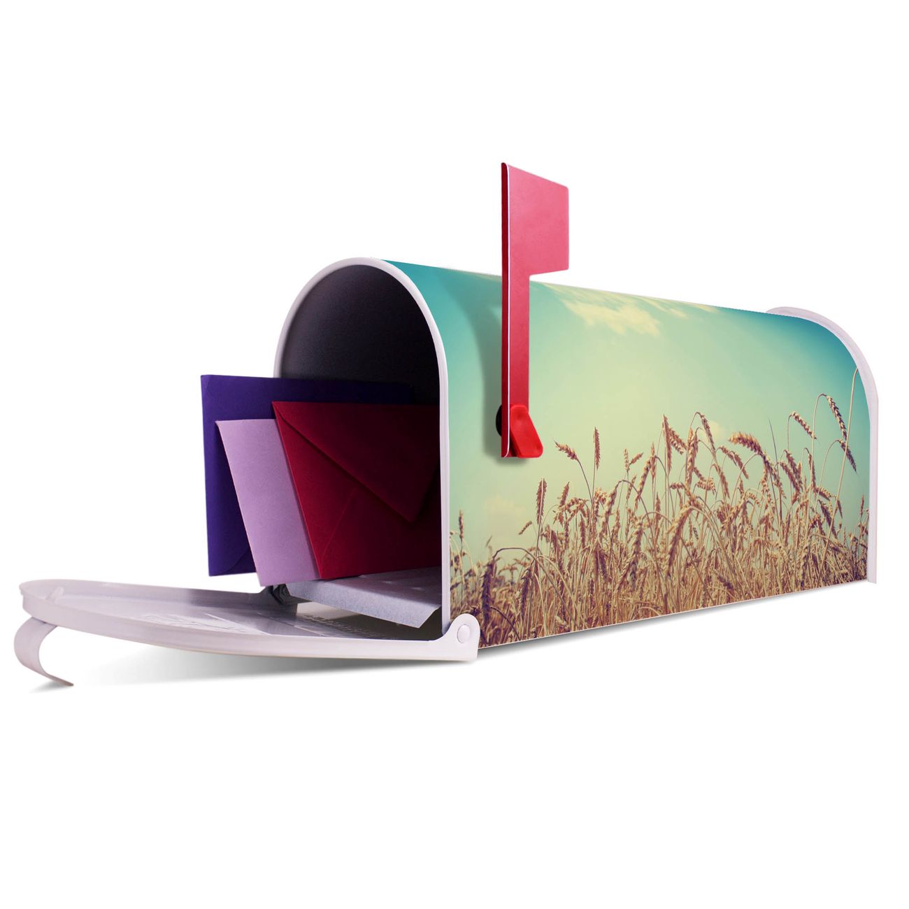 Unser amerikanischer Briefkasten mit dem Motiv Erntezeit hat ein sehr ansprechendes und ausgefallenes Design, ist in der Grundfarbe weiß, grün oder schwarz erhältlich. Damit entlocken Sie Ihren Nachbarn und dem Postboten immer wieder ein Lächeln. Die Mailbox ist ein Original Import aus Mississippi USA und wird von unserer kleinen Manufaktur in Sachsen von Hand veredelt. Die US-Mailbox bietet ausreichend Platz auch für große Sendungen, eine Fahne die Ihnen Post anzeigt, wetterfestes und äußerst stabiles Material - so macht Post empfangen Freude.