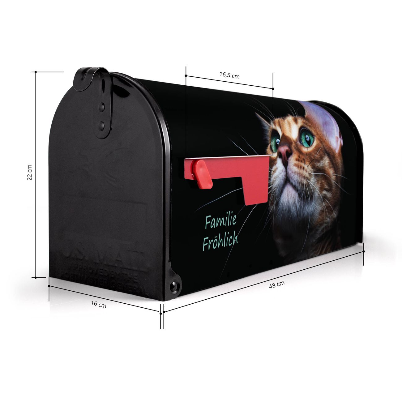 Der amerikanische Briefkasten von banjado mit Esmeralda Motiv bietet Ihnen ausreichend Fassungsvermögen, um große A4 Sendungen und Zeitschriften zu empfangen. Die typisch amerikanische rote Fahne zeigt Ihnen an, wenn Sie Post erhalten haben. Die US-Mailbox besteht aus verzinktem Stahlblech welches lackiert wurde und ist 48 x 22 x 16 CM (BxHxT) groß. Die Folie mit Motiv Esmeralda besteht aus einer wetter- und UV-resistenten Folie, die mit einem Schutzlaminat überzogen ist, sodass die US Mailbox zusätzlich vor Kratzern geschützt ist. An der Unterkante sind 4 Löcher je Seite um die Mailbox, typisch amerikanisch, an einem Holzpfahl oder einem Zaun zu befestigen. Auf Wunsch können Sie bei uns den passenden Standfuß oder die passende Wandhalterung kaufen um die US-Mailbox sicher zu befestigen. Wir bieten Ihnen ebenfalls Namensschilder, bereits beschriftet oder frei zu beschriften, und verschiedene selbst gestaltete Bitte-Keine-Werbung-Aufkleber.