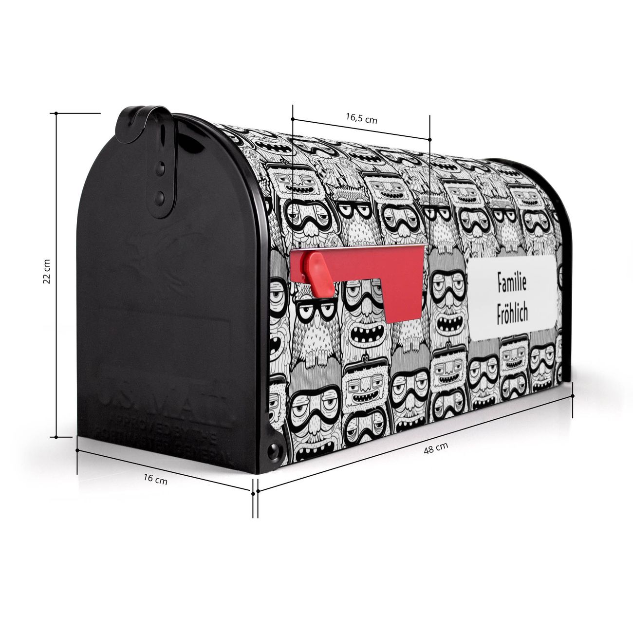 Der amerikanische Briefkasten von banjado mit Eule und Olaf Motiv bietet Ihnen ausreichend Fassungsvermögen, um große A4 Sendungen und Zeitschriften zu empfangen. Die typisch amerikanische rote Fahne zeigt Ihnen an, wenn Sie Post erhalten haben. Die US-Mailbox besteht aus verzinktem Stahlblech welches lackiert wurde und ist 48 x 22 x 16 CM (BxHxT) groß. Die Folie mit Motiv Eule und Olaf besteht aus einer wetter- und UV-resistenten Folie, die mit einem Schutzlaminat überzogen ist, sodass die US Mailbox zusätzlich vor Kratzern geschützt ist. An der Unterkante sind 4 Löcher je Seite um die Mailbox, typisch amerikanisch, an einem Holzpfahl oder einem Zaun zu befestigen. Auf Wunsch können Sie bei uns den passenden Standfuß oder die passende Wandhalterung kaufen um die US-Mailbox sicher zu befestigen. Wir bieten Ihnen ebenfalls Namensschilder, bereits beschriftet oder frei zu beschriften, und verschiedene selbst gestaltete Bitte-Keine-Werbung-Aufkleber.