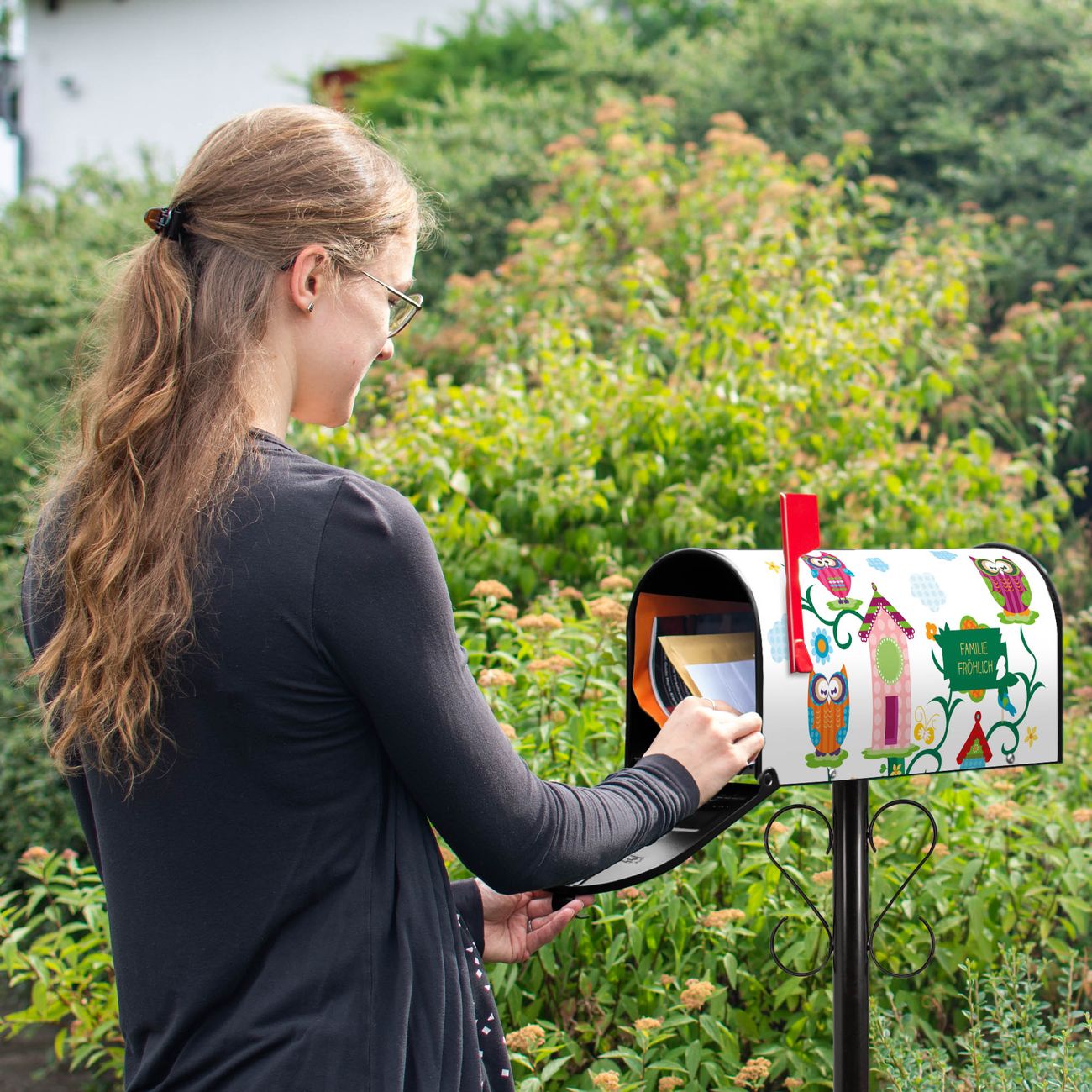 Amerikanischer Briefkasten Eulenfamilie
