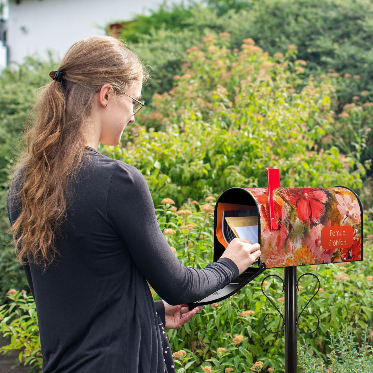 Unser amerikanischer Briefkasten mit dem Motiv Fallende Blumen hat ein sehr ansprechendes und ausgefallenes Design, ist in der Grundfarbe weiß, grün oder schwarz erhältlich. Damit entlocken Sie Ihren Nachbarn und dem Postboten immer wieder ein Lächeln. Die Mailbox ist ein Original Import aus Mississippi USA und wird von unserer kleinen Manufaktur in Sachsen von Hand veredelt. Die US-Mailbox bietet ausreichend Platz auch für große Sendungen, eine Fahne die Ihnen Post anzeigt, wetterfestes und äußerst stabiles Material - so macht Post empfangen Freude.