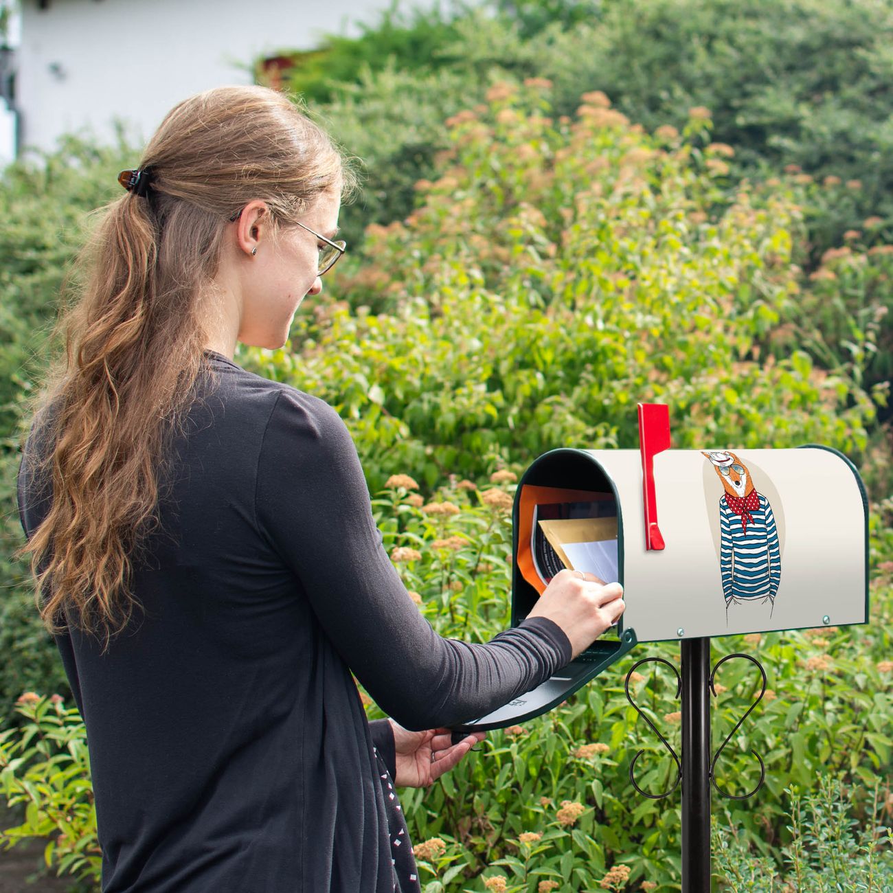 Unser amerikanischer Briefkasten mit dem Motiv Fancy Fox hat ein sehr ansprechendes und ausgefallenes Design, ist in der Grundfarbe weiß, grün oder schwarz erhältlich. Damit entlocken Sie Ihren Nachbarn und dem Postboten immer wieder ein Lächeln. Die Mailbox ist ein Original Import aus Mississippi USA und wird von unserer kleinen Manufaktur in Sachsen von Hand veredelt. Die US-Mailbox bietet ausreichend Platz auch für große Sendungen, eine Fahne die Ihnen Post anzeigt, wetterfestes und äußerst stabiles Material - so macht Post empfangen Freude.