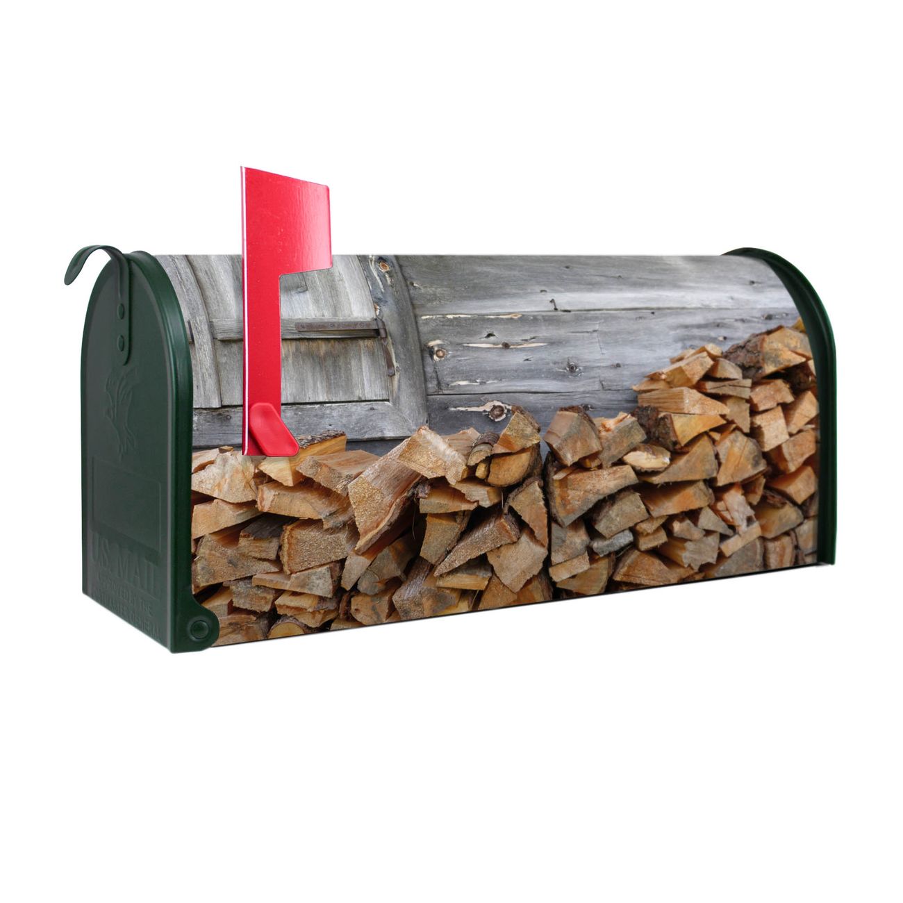 Unser amerikanischer Briefkasten mit dem Motiv Feuerholz hat ein sehr ansprechendes und ausgefallenes Design, ist in der Grundfarbe weiß, grün oder schwarz erhältlich. Damit entlocken Sie Ihren Nachbarn und dem Postboten immer wieder ein Lächeln. Die Mailbox ist ein Original Import aus Mississippi USA und wird von unserer kleinen Manufaktur in Sachsen von Hand veredelt. Die US-Mailbox bietet ausreichend Platz auch für große Sendungen, eine Fahne die Ihnen Post anzeigt, wetterfestes und äußerst stabiles Material - so macht Post empfangen Freude.