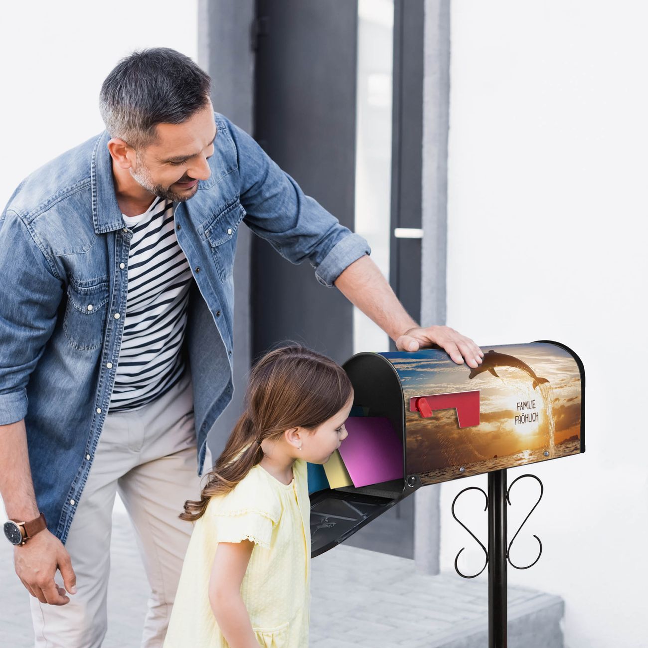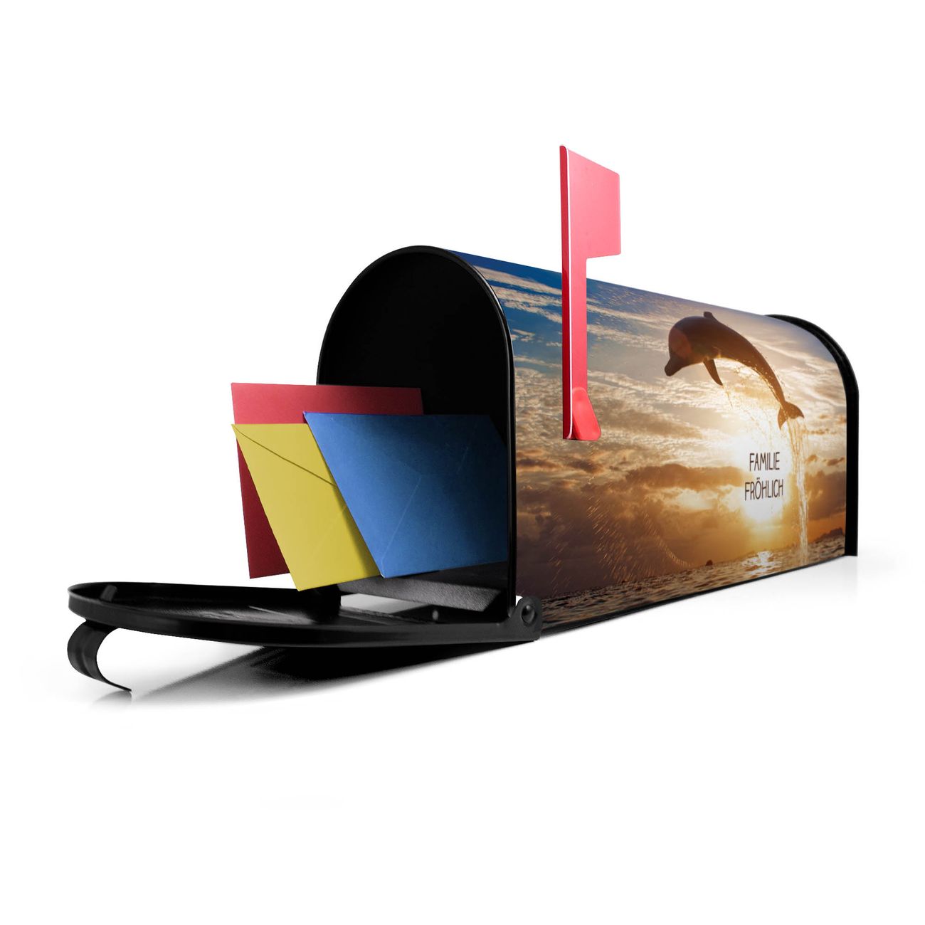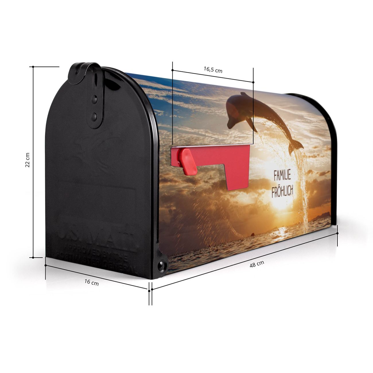 Der amerikanische Briefkasten von banjado mit Filippo Motiv bietet Ihnen ausreichend Fassungsvermögen, um große A4 Sendungen und Zeitschriften zu empfangen. Die typisch amerikanische rote Fahne zeigt Ihnen an, wenn Sie Post erhalten haben. Die US-Mailbox besteht aus verzinktem Stahlblech welches lackiert wurde und ist 48 x 22 x 16 CM (BxHxT) groß. Die Folie mit Motiv Filippo besteht aus einer wetter- und UV-resistenten Folie, die mit einem Schutzlaminat überzogen ist, sodass die US Mailbox zusätzlich vor Kratzern geschützt ist. An der Unterkante sind 4 Löcher je Seite um die Mailbox, typisch amerikanisch, an einem Holzpfahl oder einem Zaun zu befestigen. Auf Wunsch können Sie bei uns den passenden Standfuß oder die passende Wandhalterung kaufen um die US-Mailbox sicher zu befestigen. Wir bieten Ihnen ebenfalls Namensschilder, bereits beschriftet oder frei zu beschriften, und verschiedene selbst gestaltete Bitte-Keine-Werbung-Aufkleber.