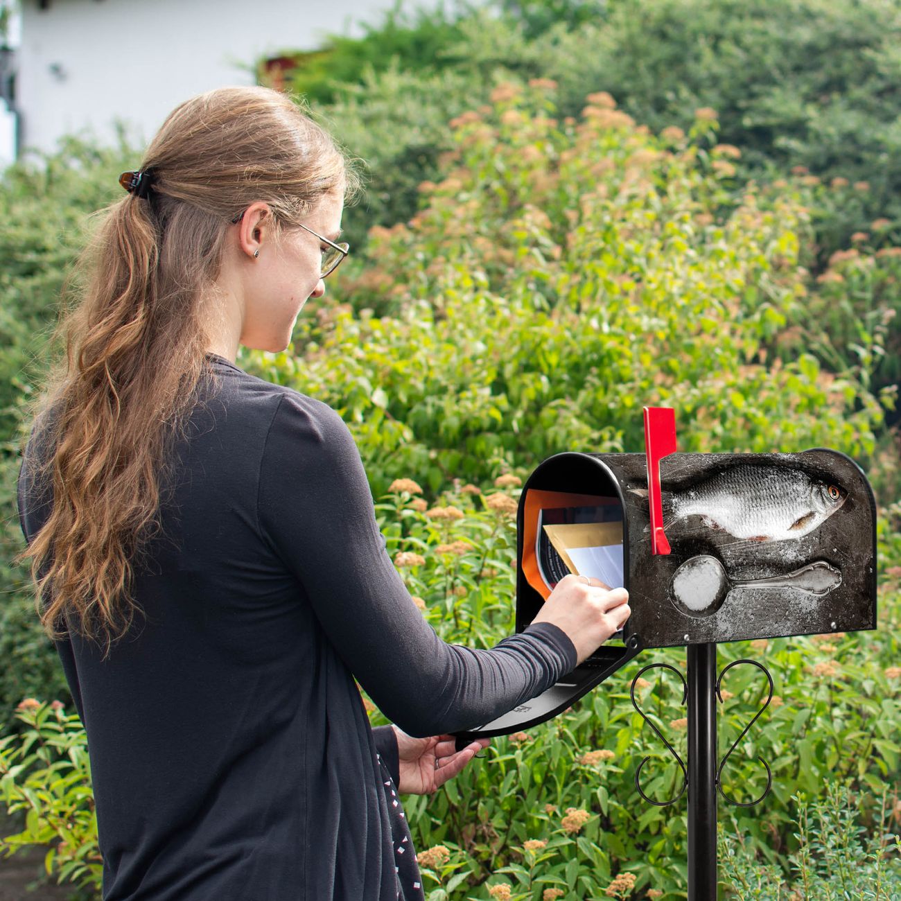 Unser amerikanischer Briefkasten mit dem Motiv Fisch Und Salz hat ein sehr ansprechendes und ausgefallenes Design, ist in der Grundfarbe weiß, grün oder schwarz erhältlich. Damit entlocken Sie Ihren Nachbarn und dem Postboten immer wieder ein Lächeln. Die Mailbox ist ein Original Import aus Mississippi USA und wird von unserer kleinen Manufaktur in Sachsen von Hand veredelt. Die US-Mailbox bietet ausreichend Platz auch für große Sendungen, eine Fahne die Ihnen Post anzeigt, wetterfestes und äußerst stabiles Material - so macht Post empfangen Freude.