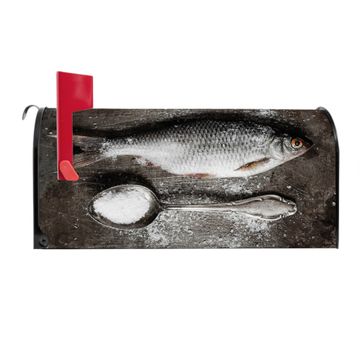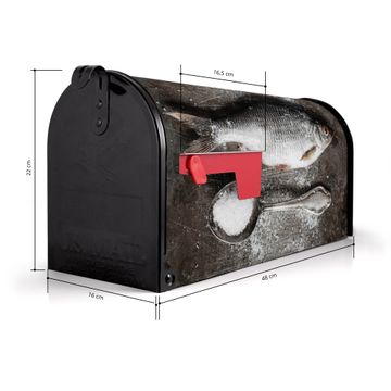 Der amerikanische Briefkasten von banjado mit Fisch Und Salz Motiv bietet Ihnen ausreichend Fassungsvermögen, um große A4 Sendungen und Zeitschriften zu empfangen. Die typisch amerikanische rote Fahne zeigt Ihnen an, wenn Sie Post erhalten haben. Die US-Mailbox besteht aus verzinktem Stahlblech welches lackiert wurde und ist 48 x 22 x 16 CM (BxHxT) groß. Die Folie mit Motiv Fisch Und Salz besteht aus einer wetter- und UV-resistenten Folie, die mit einem Schutzlaminat überzogen ist, sodass die US Mailbox zusätzlich vor Kratzern geschützt ist. An der Unterkante sind 4 Löcher je Seite um die Mailbox, typisch amerikanisch, an einem Holzpfahl oder einem Zaun zu befestigen. Auf Wunsch können Sie bei uns den passenden Standfuß oder die passende Wandhalterung kaufen um die US-Mailbox sicher zu befestigen. Wir bieten Ihnen ebenfalls Namensschilder, bereits beschriftet oder frei zu beschriften, und verschiedene selbst gestaltete Bitte-Keine-Werbung-Aufkleber.