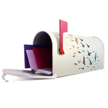 Unser amerikanischer Briefkasten mit dem Motiv Fliegende Vögel hat ein sehr ansprechendes und ausgefallenes Design, ist in der Grundfarbe weiß, grün oder schwarz erhältlich. Damit entlocken Sie Ihren Nachbarn und dem Postboten immer wieder ein Lächeln. Die Mailbox ist ein Original Import aus Mississippi USA und wird von unserer kleinen Manufaktur in Sachsen von Hand veredelt. Die US-Mailbox bietet ausreichend Platz auch für große Sendungen, eine Fahne die Ihnen Post anzeigt, wetterfestes und äußerst stabiles Material - so macht Post empfangen Freude.
