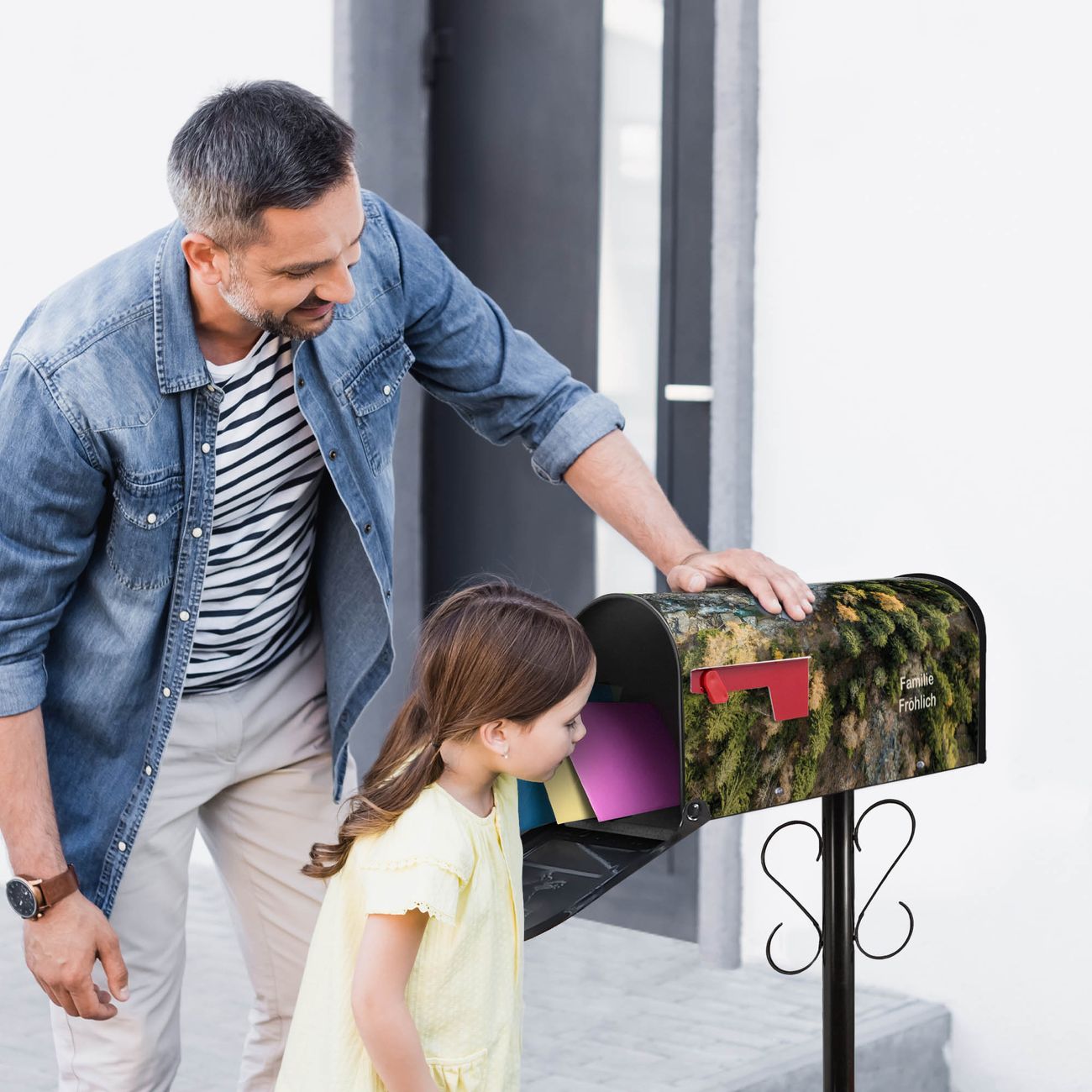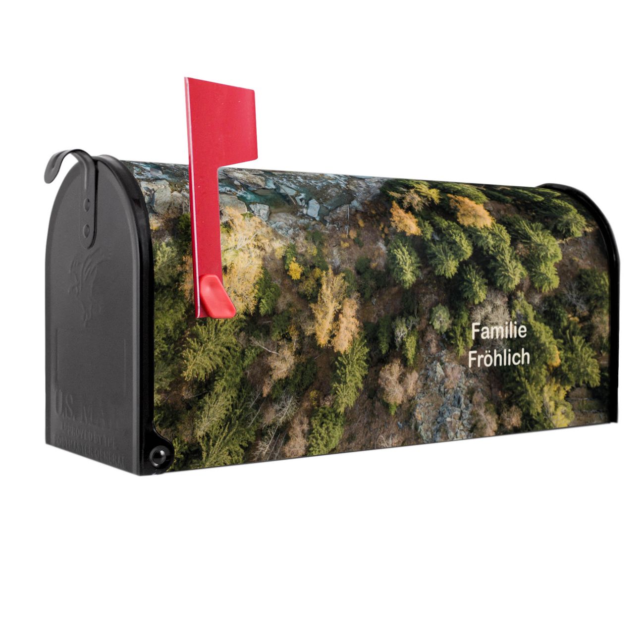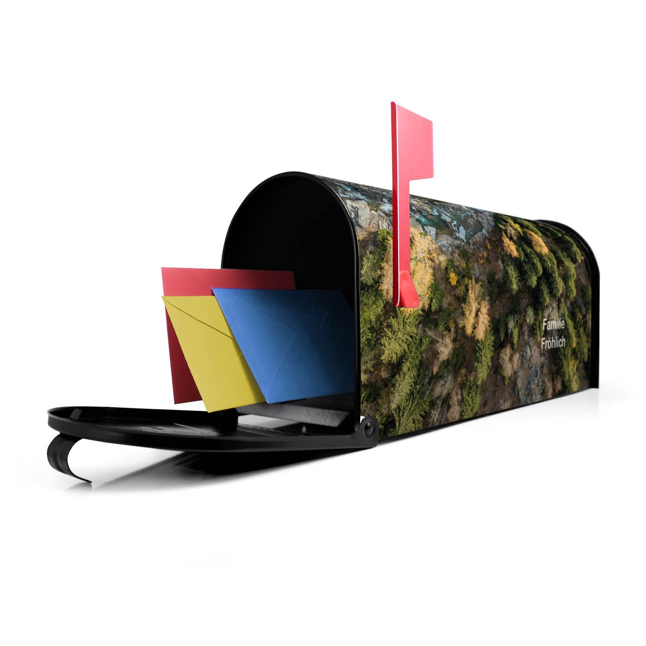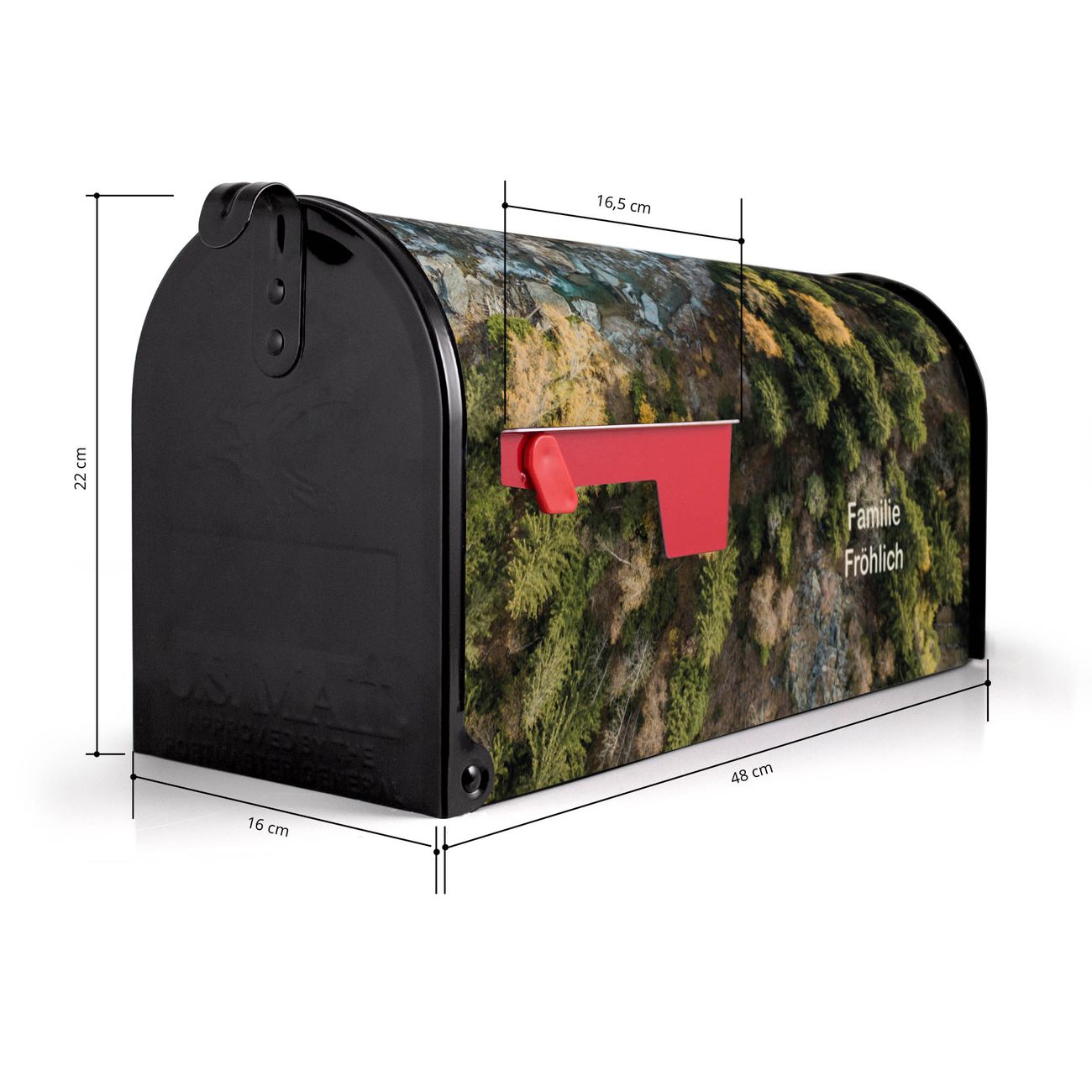 Der amerikanische Briefkasten von banjado mit Fluss im Tal 2 Motiv bietet Ihnen ausreichend Fassungsvermögen, um große A4 Sendungen und Zeitschriften zu empfangen. Die typisch amerikanische rote Fahne zeigt Ihnen an, wenn Sie Post erhalten haben. Die US-Mailbox besteht aus verzinktem Stahlblech welches lackiert wurde und ist 48 x 22 x 16 CM (BxHxT) groß. Die Folie mit Motiv Fluss im Tal 2 besteht aus einer wetter- und UV-resistenten Folie, die mit einem Schutzlaminat überzogen ist, sodass die US Mailbox zusätzlich vor Kratzern geschützt ist. An der Unterkante sind 4 Löcher je Seite um die Mailbox, typisch amerikanisch, an einem Holzpfahl oder einem Zaun zu befestigen. Auf Wunsch können Sie bei uns den passenden Standfuß oder die passende Wandhalterung kaufen um die US-Mailbox sicher zu befestigen. Wir bieten Ihnen ebenfalls Namensschilder, bereits beschriftet oder frei zu beschriften, und verschiedene selbst gestaltete Bitte-Keine-Werbung-Aufkleber.
