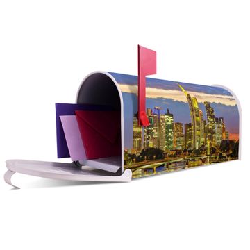 Unser amerikanischer Briefkasten mit dem Motiv Frankfurt Main hat ein sehr ansprechendes und ausgefallenes Design, ist in der Grundfarbe weiß, grün oder schwarz erhältlich. Damit entlocken Sie Ihren Nachbarn und dem Postboten immer wieder ein Lächeln. Die Mailbox ist ein Original Import aus Mississippi USA und wird von unserer kleinen Manufaktur in Sachsen von Hand veredelt. Die US-Mailbox bietet ausreichend Platz auch für große Sendungen, eine Fahne die Ihnen Post anzeigt, wetterfestes und äußerst stabiles Material - so macht Post empfangen Freude.
