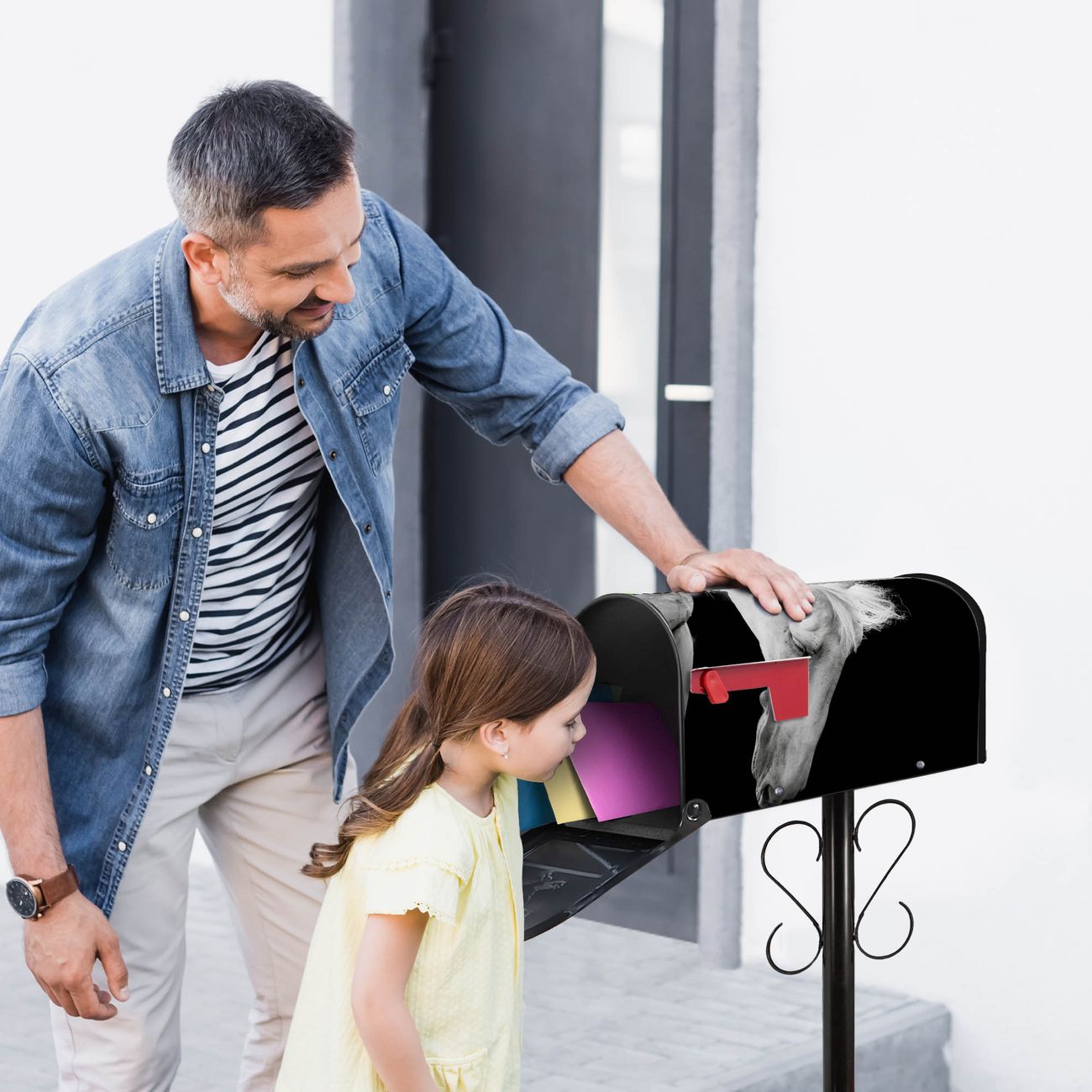 Unser amerikanischer Briefkasten mit dem Motiv Frederik hat ein sehr ansprechendes und ausgefallenes Design, ist in der Grundfarbe weiß, grün oder schwarz erhältlich. Damit entlocken Sie Ihren Nachbarn und dem Postboten immer wieder ein Lächeln. Die Mailbox ist ein Original Import aus Mississippi USA und wird von unserer kleinen Manufaktur in Sachsen von Hand veredelt. Die US-Mailbox bietet ausreichend Platz auch für große Sendungen, eine Fahne die Ihnen Post anzeigt, wetterfestes und äußerst stabiles Material - so macht Post empfangen Freude.