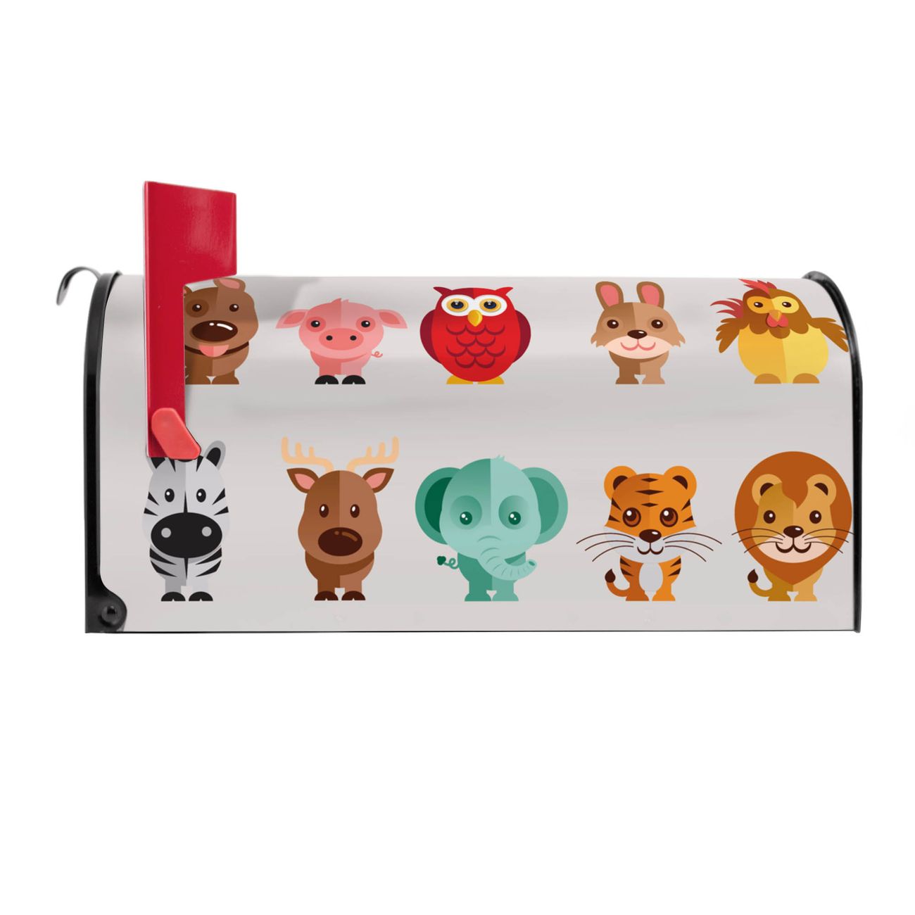 Der amerikanische Briefkasten von banjado mit Freunde Motiv bietet Ihnen ausreichend Fassungsvermögen, um große A4 Sendungen und Zeitschriften zu empfangen. Die typisch amerikanische rote Fahne zeigt Ihnen an, wenn Sie Post erhalten haben. Die US-Mailbox besteht aus verzinktem Stahlblech welches lackiert wurde und ist 48 x 22 x 16 CM (BxHxT) groß. Die Folie mit Motiv Freunde besteht aus einer wetter- und UV-resistenten Folie, die mit einem Schutzlaminat überzogen ist, sodass die US Mailbox zusätzlich vor Kratzern geschützt ist. An der Unterkante sind 4 Löcher je Seite um die Mailbox, typisch amerikanisch, an einem Holzpfahl oder einem Zaun zu befestigen. Auf Wunsch können Sie bei uns den passenden Standfuß oder die passende Wandhalterung kaufen um die US-Mailbox sicher zu befestigen. Wir bieten Ihnen ebenfalls Namensschilder, bereits beschriftet oder frei zu beschriften, und verschiedene selbst gestaltete Bitte-Keine-Werbung-Aufkleber.