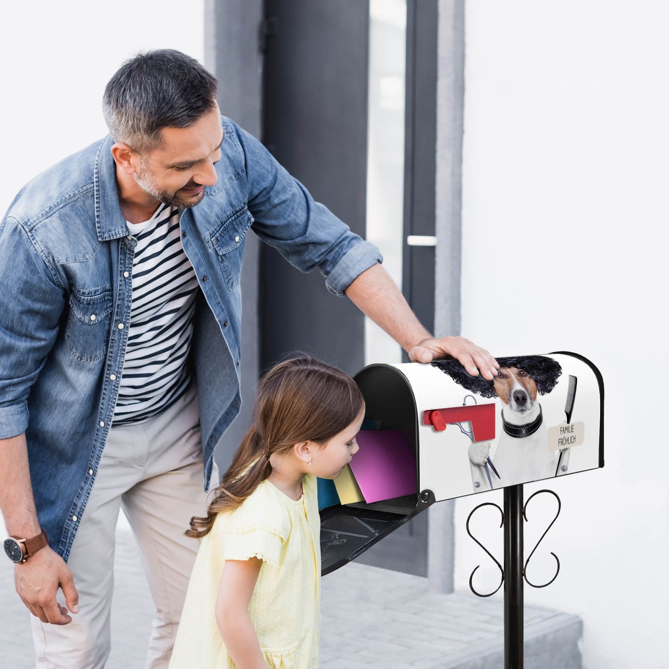 Unser amerikanischer Briefkasten mit dem Motiv Friseur Jack Russel hat ein sehr ansprechendes und ausgefallenes Design, ist in der Grundfarbe weiß, grün oder schwarz erhältlich. Damit entlocken Sie Ihren Nachbarn und dem Postboten immer wieder ein Lächeln. Die Mailbox ist ein Original Import aus Mississippi USA und wird von unserer kleinen Manufaktur in Sachsen von Hand veredelt. Die US-Mailbox bietet ausreichend Platz auch für große Sendungen, eine Fahne die Ihnen Post anzeigt, wetterfestes und äußerst stabiles Material - so macht Post empfangen Freude.