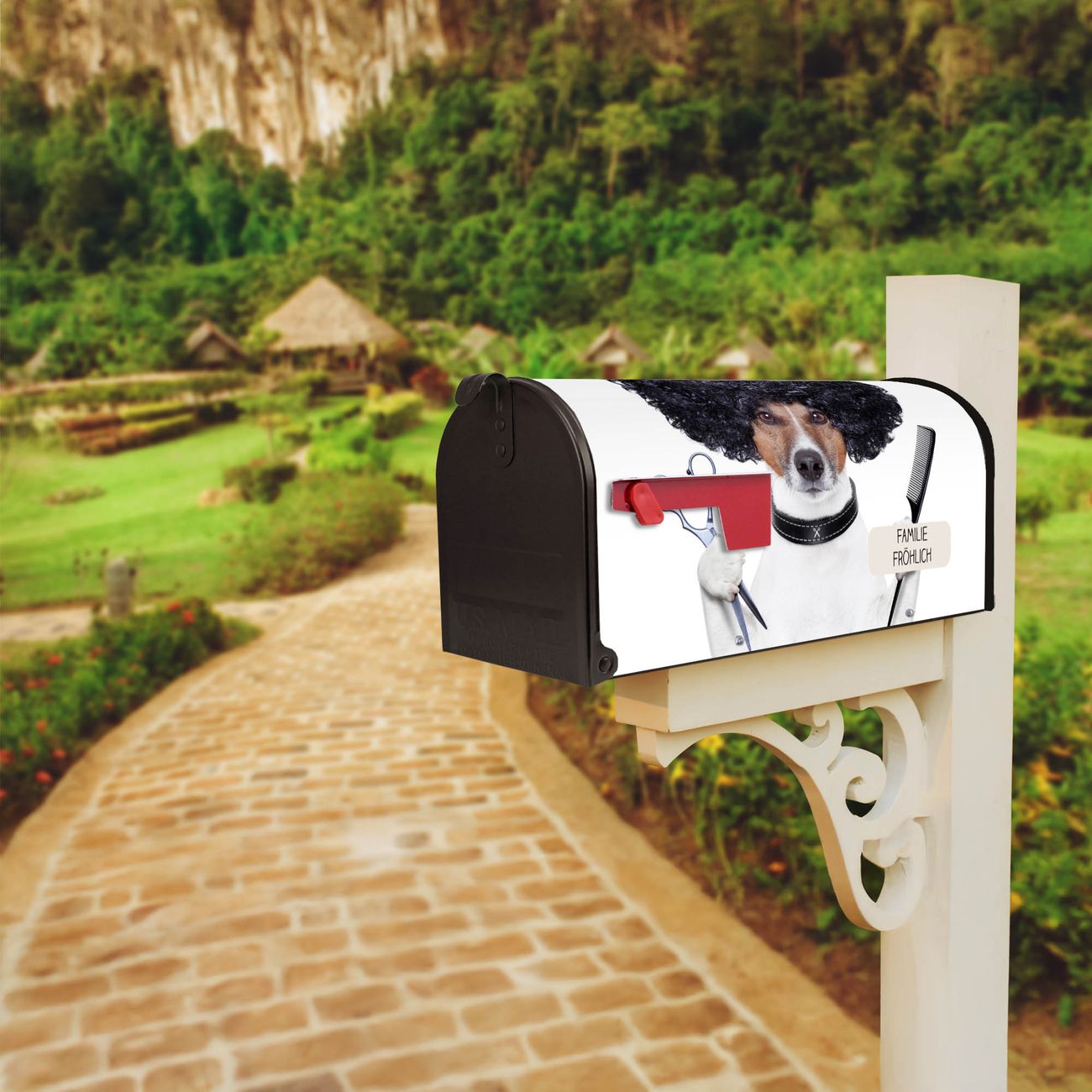 Amerikanischer Briefkasten Friseur Jack Russel