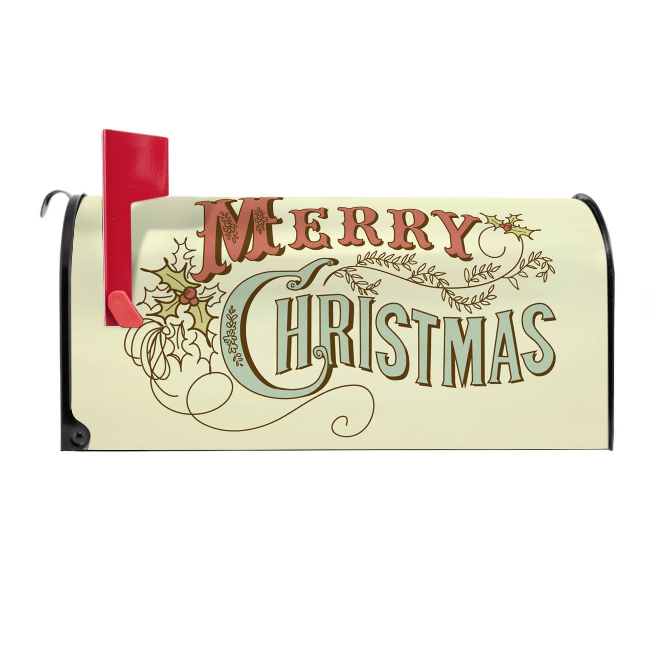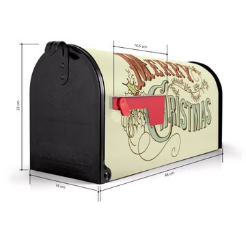 Der amerikanische Briefkasten von banjado mit Frohes Fest Motiv bietet Ihnen ausreichend Fassungsvermögen, um große A4 Sendungen und Zeitschriften zu empfangen. Die typisch amerikanische rote Fahne zeigt Ihnen an, wenn Sie Post erhalten haben. Die US-Mailbox besteht aus verzinktem Stahlblech welches lackiert wurde und ist 48 x 22 x 16 CM (BxHxT) groß. Die Folie mit Motiv Frohes Fest besteht aus einer wetter- und UV-resistenten Folie, die mit einem Schutzlaminat überzogen ist, sodass die US Mailbox zusätzlich vor Kratzern geschützt ist. An der Unterkante sind 4 Löcher je Seite um die Mailbox, typisch amerikanisch, an einem Holzpfahl oder einem Zaun zu befestigen. Auf Wunsch können Sie bei uns den passenden Standfuß oder die passende Wandhalterung kaufen um die US-Mailbox sicher zu befestigen. Wir bieten Ihnen ebenfalls Namensschilder, bereits beschriftet oder frei zu beschriften, und verschiedene selbst gestaltete Bitte-Keine-Werbung-Aufkleber.