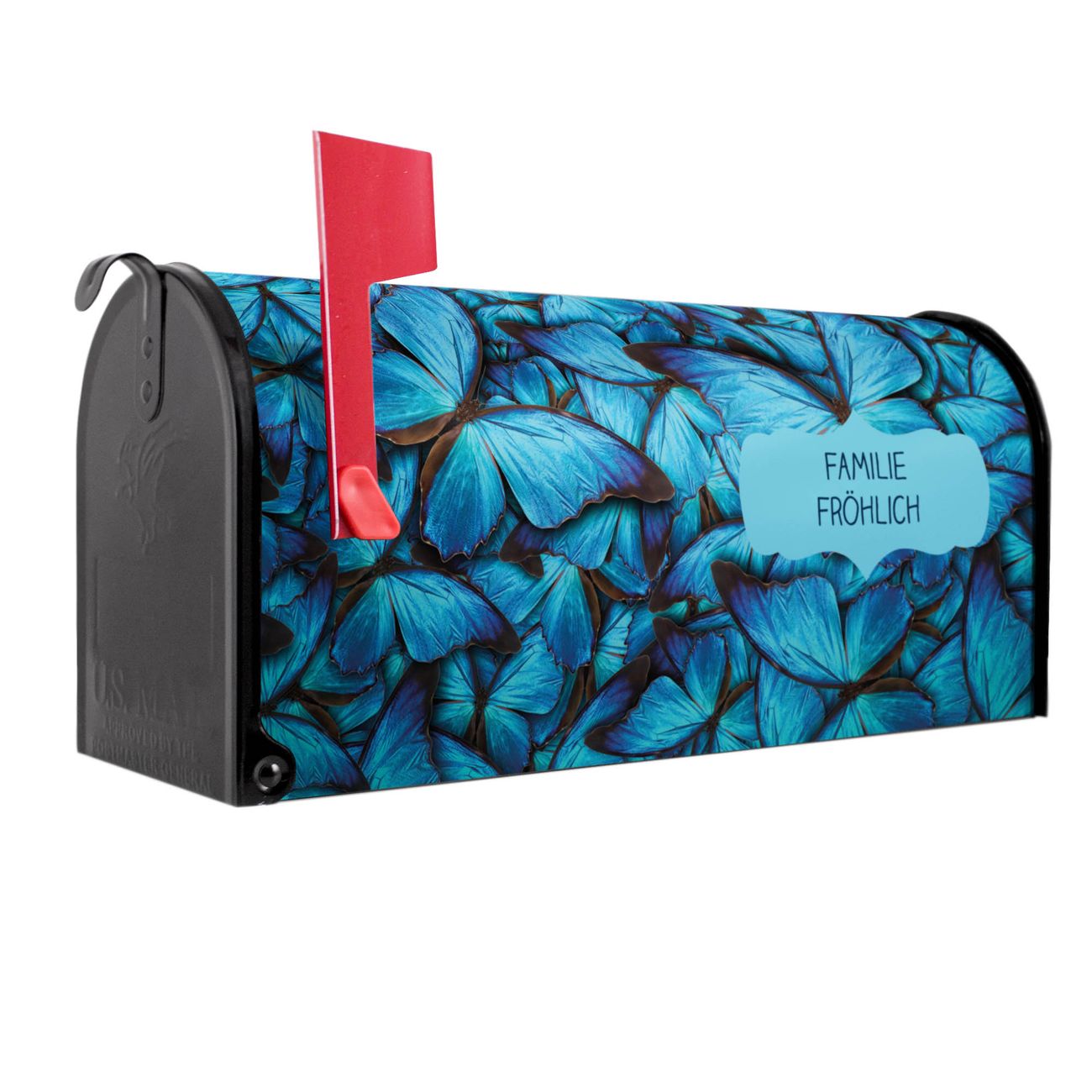 Unser amerikanischer Briefkasten mit dem Motiv Fürstliche Falter hat ein sehr ansprechendes und ausgefallenes Design, ist in der Grundfarbe weiß, grün oder schwarz erhältlich. Damit entlocken Sie Ihren Nachbarn und dem Postboten immer wieder ein Lächeln. Die Mailbox ist ein Original Import aus Mississippi USA und wird von unserer kleinen Manufaktur in Sachsen von Hand veredelt. Die US-Mailbox bietet ausreichend Platz auch für große Sendungen, eine Fahne die Ihnen Post anzeigt, wetterfestes und äußerst stabiles Material - so macht Post empfangen Freude.