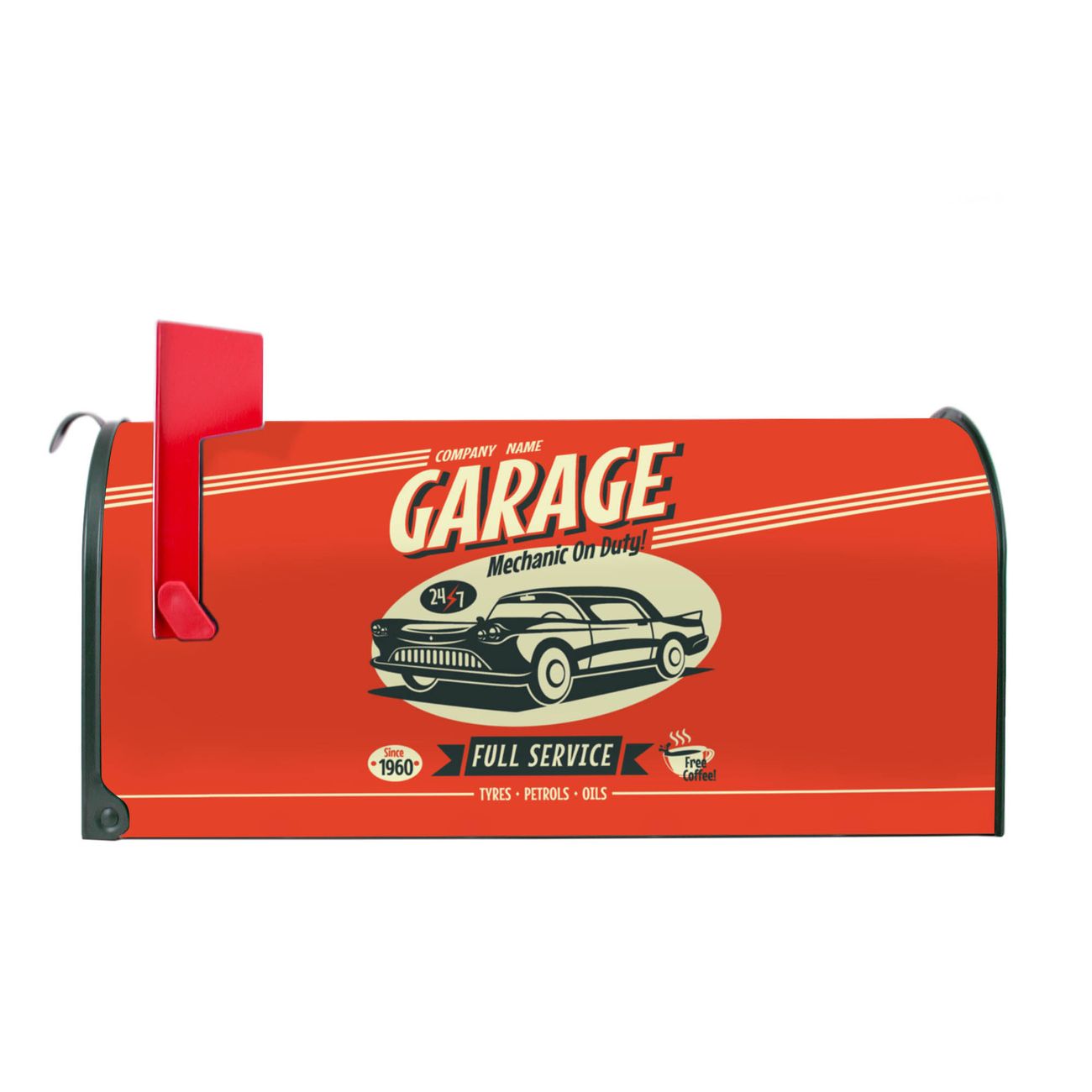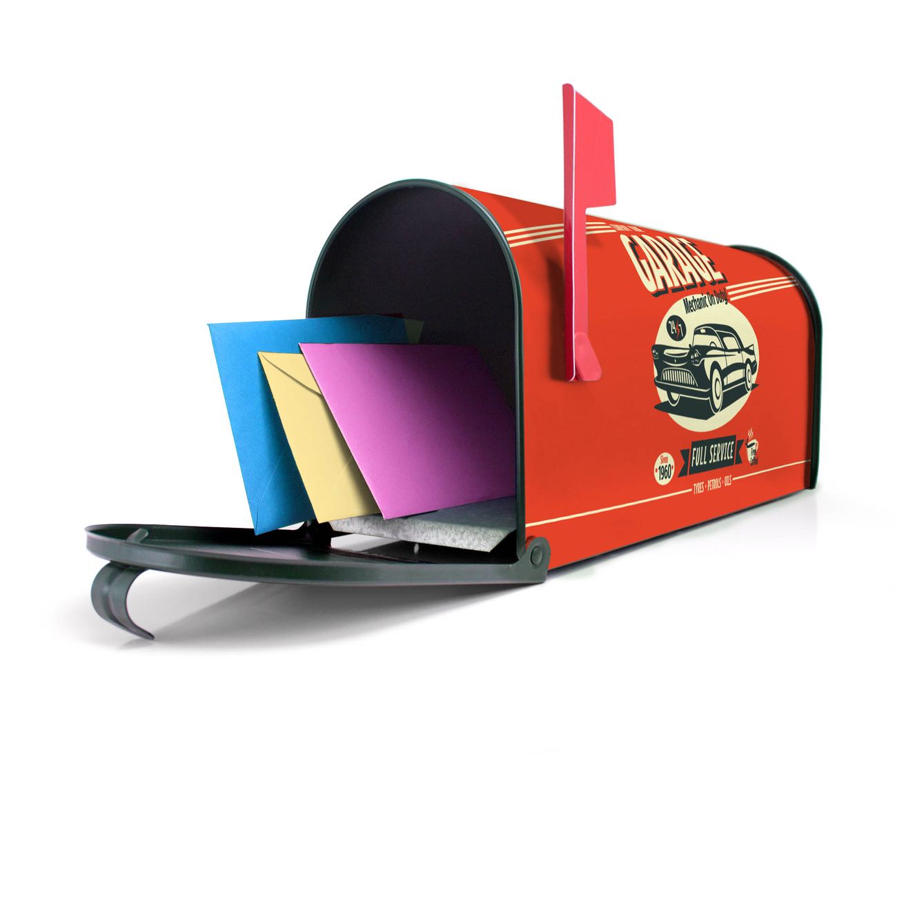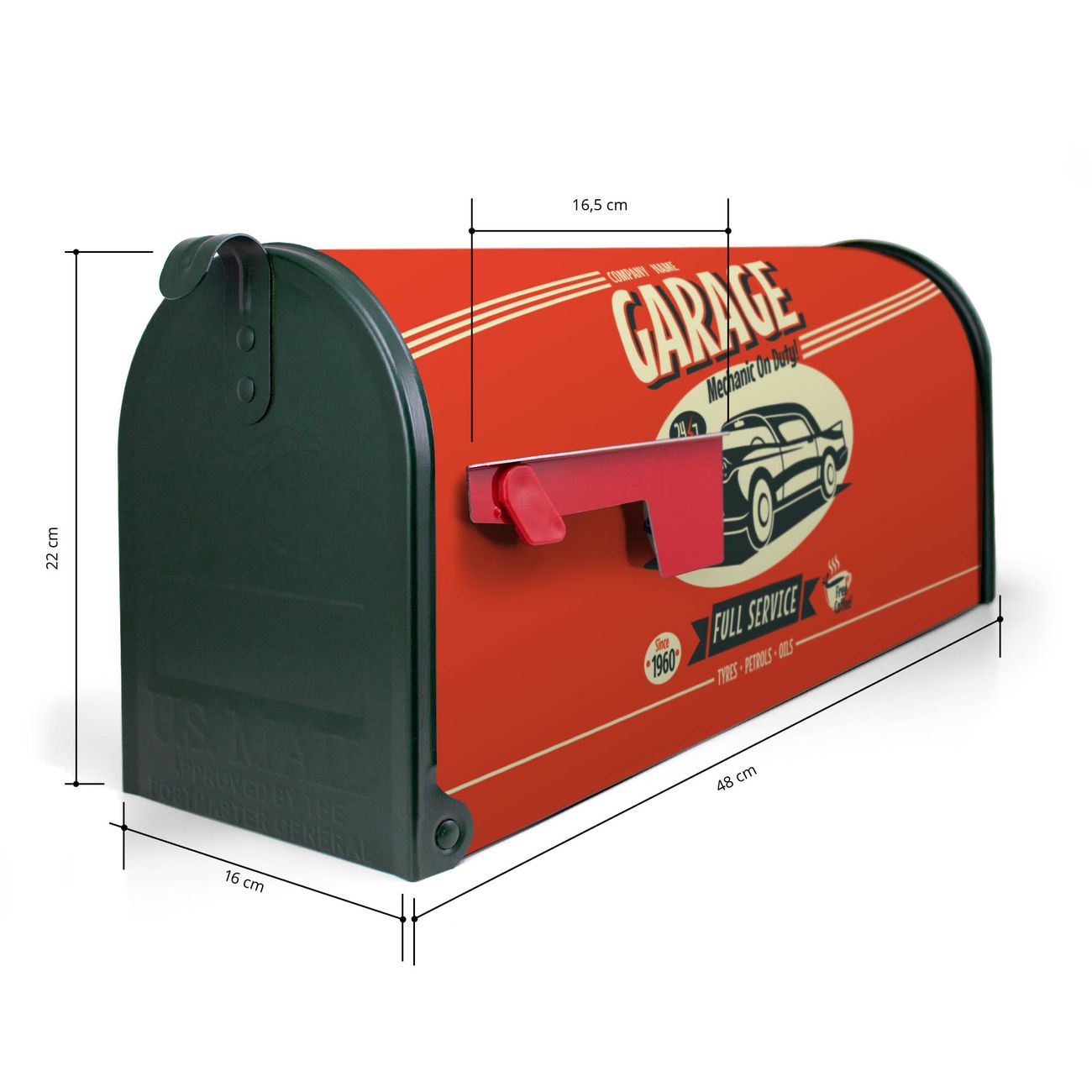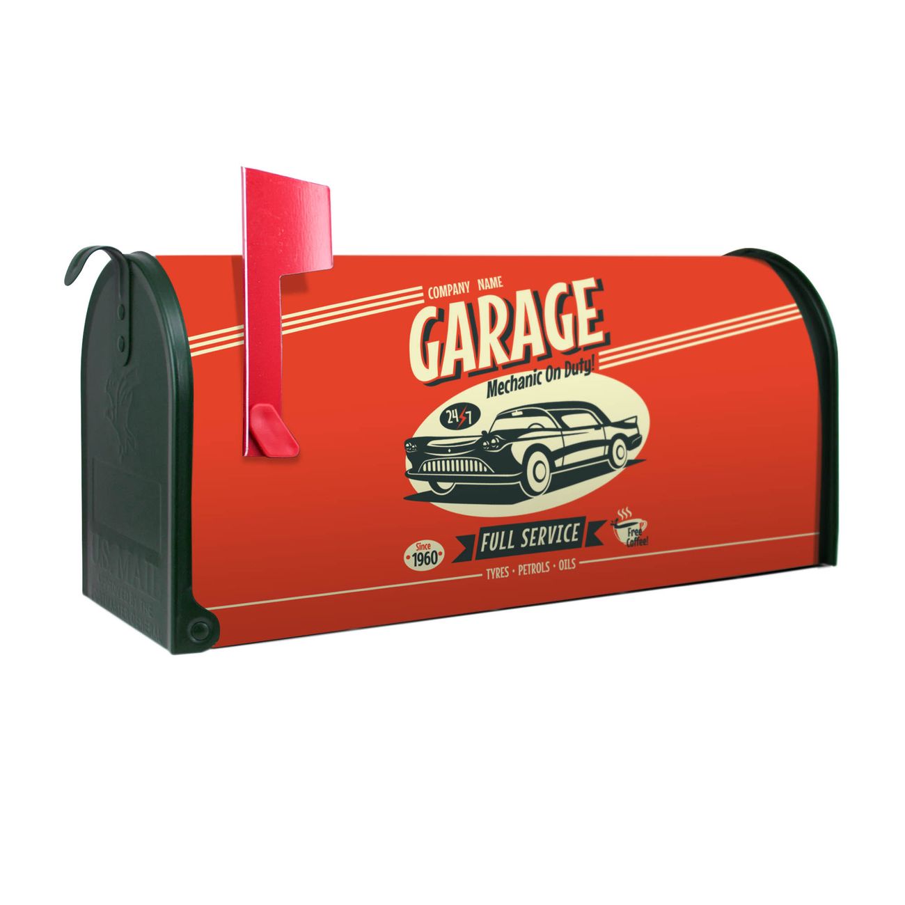 Unser amerikanischer Briefkasten mit dem Motiv Full Service hat ein sehr ansprechendes und ausgefallenes Design, ist in der Grundfarbe weiß, grün oder schwarz erhältlich. Damit entlocken Sie Ihren Nachbarn und dem Postboten immer wieder ein Lächeln. Die Mailbox ist ein Original Import aus Mississippi USA und wird von unserer kleinen Manufaktur in Sachsen von Hand veredelt. Die US-Mailbox bietet ausreichend Platz auch für große Sendungen, eine Fahne die Ihnen Post anzeigt, wetterfestes und äußerst stabiles Material - so macht Post empfangen Freude.