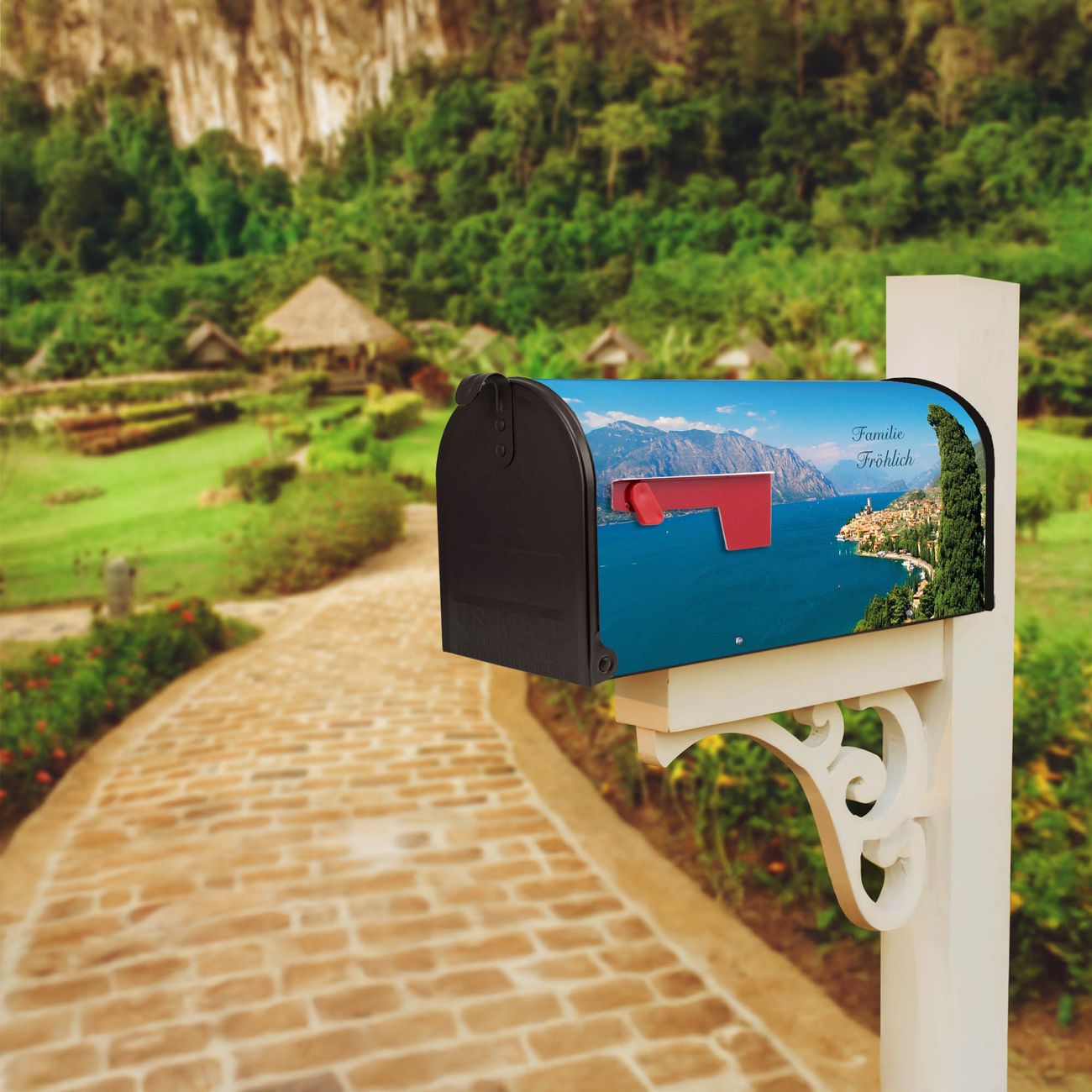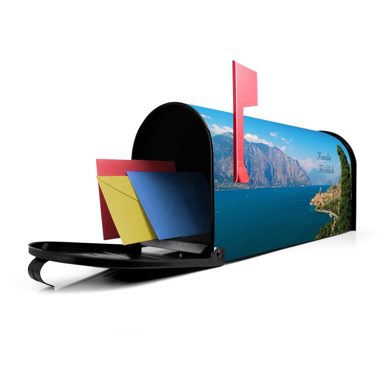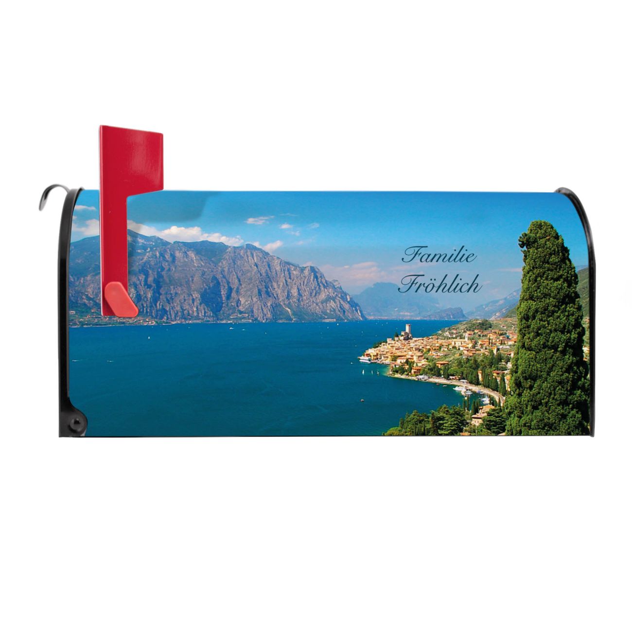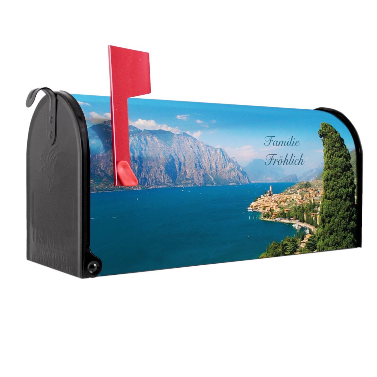 Unser amerikanischer Briefkasten mit dem Motiv Gardasee hat ein sehr ansprechendes und ausgefallenes Design, ist in der Grundfarbe weiß, grün oder schwarz erhältlich. Damit entlocken Sie Ihren Nachbarn und dem Postboten immer wieder ein Lächeln. Die Mailbox ist ein Original Import aus Mississippi USA und wird von unserer kleinen Manufaktur in Sachsen von Hand veredelt. Die US-Mailbox bietet ausreichend Platz auch für große Sendungen, eine Fahne die Ihnen Post anzeigt, wetterfestes und äußerst stabiles Material - so macht Post empfangen Freude.